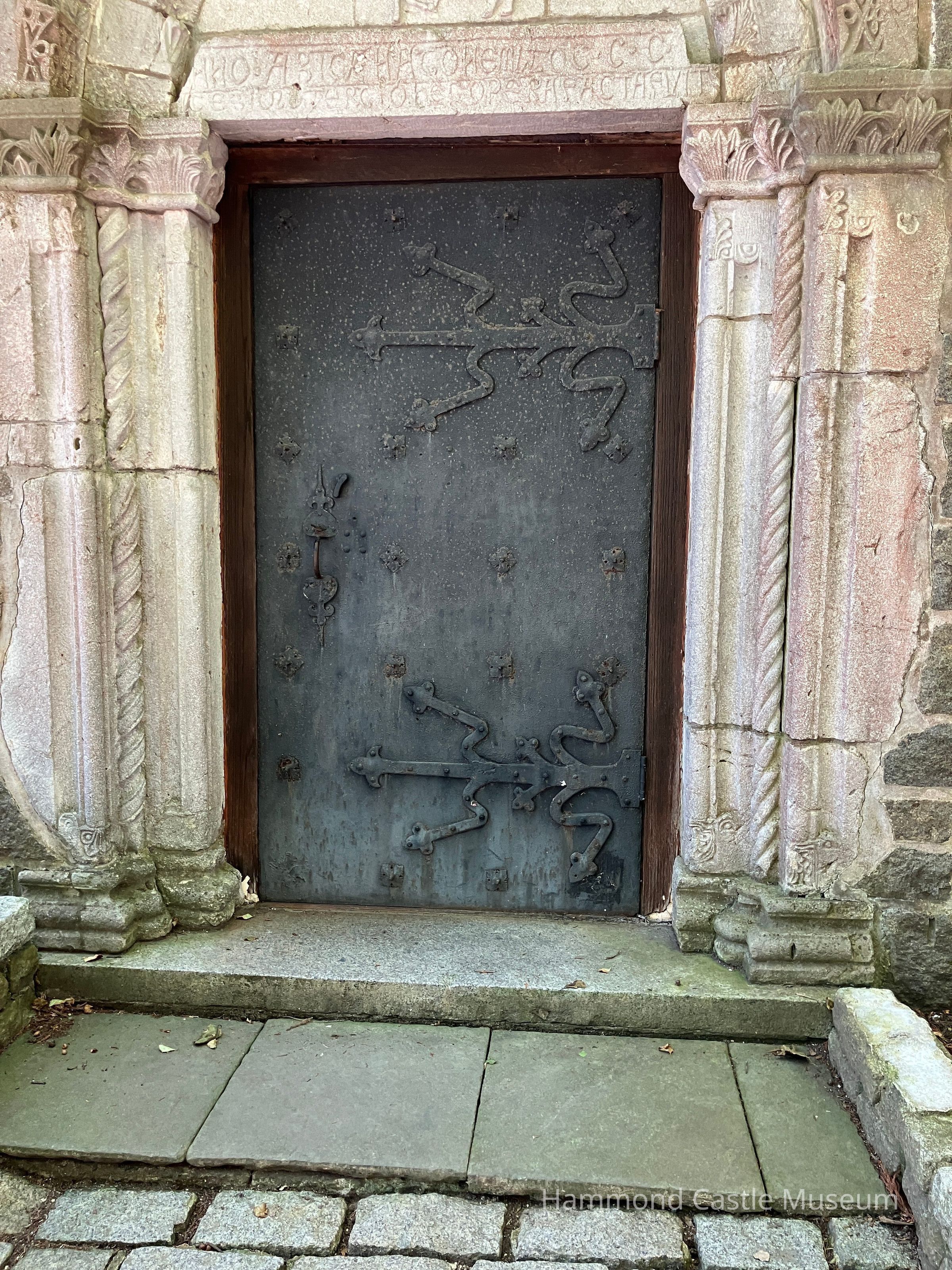 Large iron door under Agnus Dei arch at entrance 2 large elaborate hinges *no catalog card