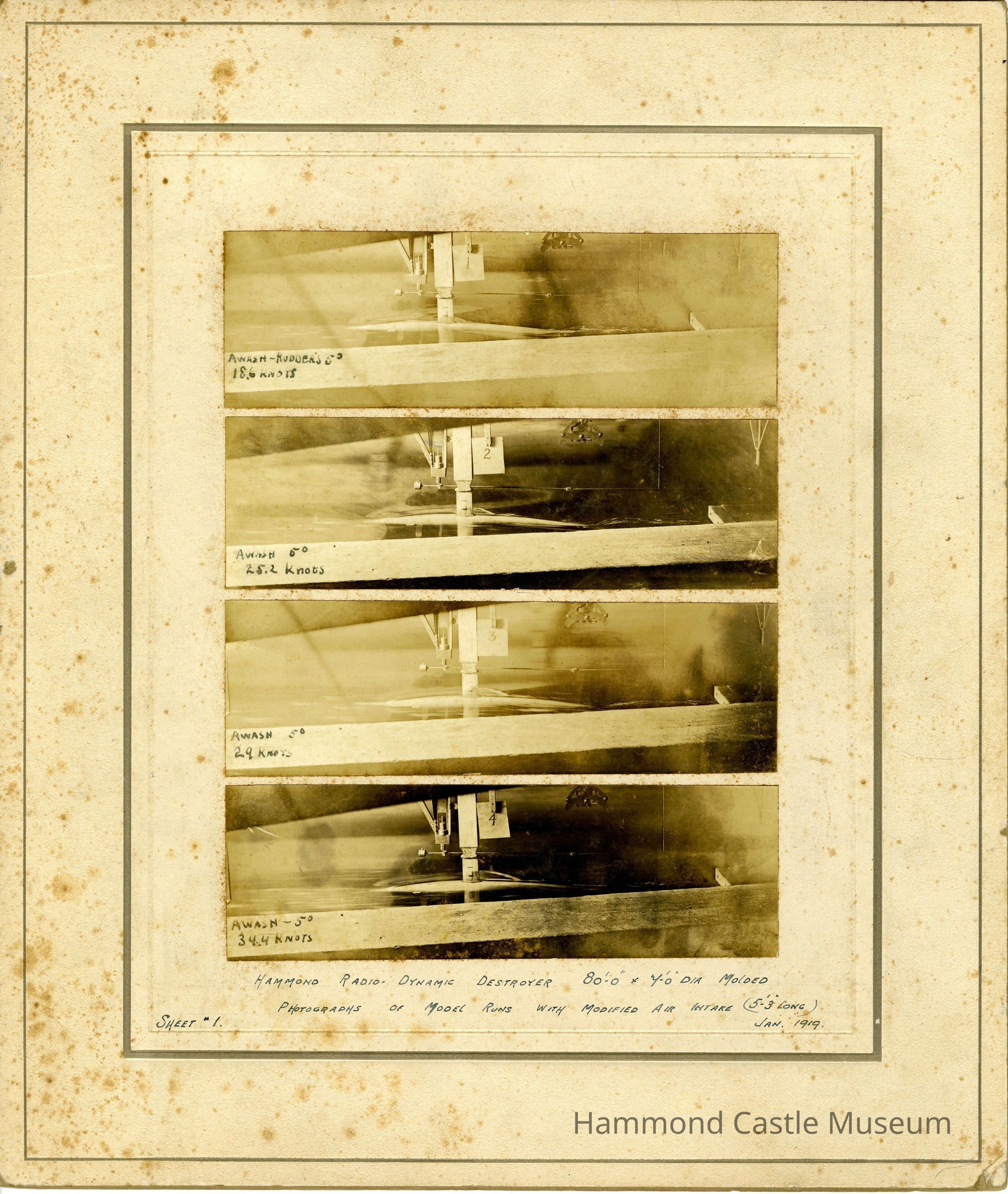 Photos & notes of Hammond Radio-Dynamic Destroyer Sheet#1 Model Runs with Modified Air Intake, Jan 1919
