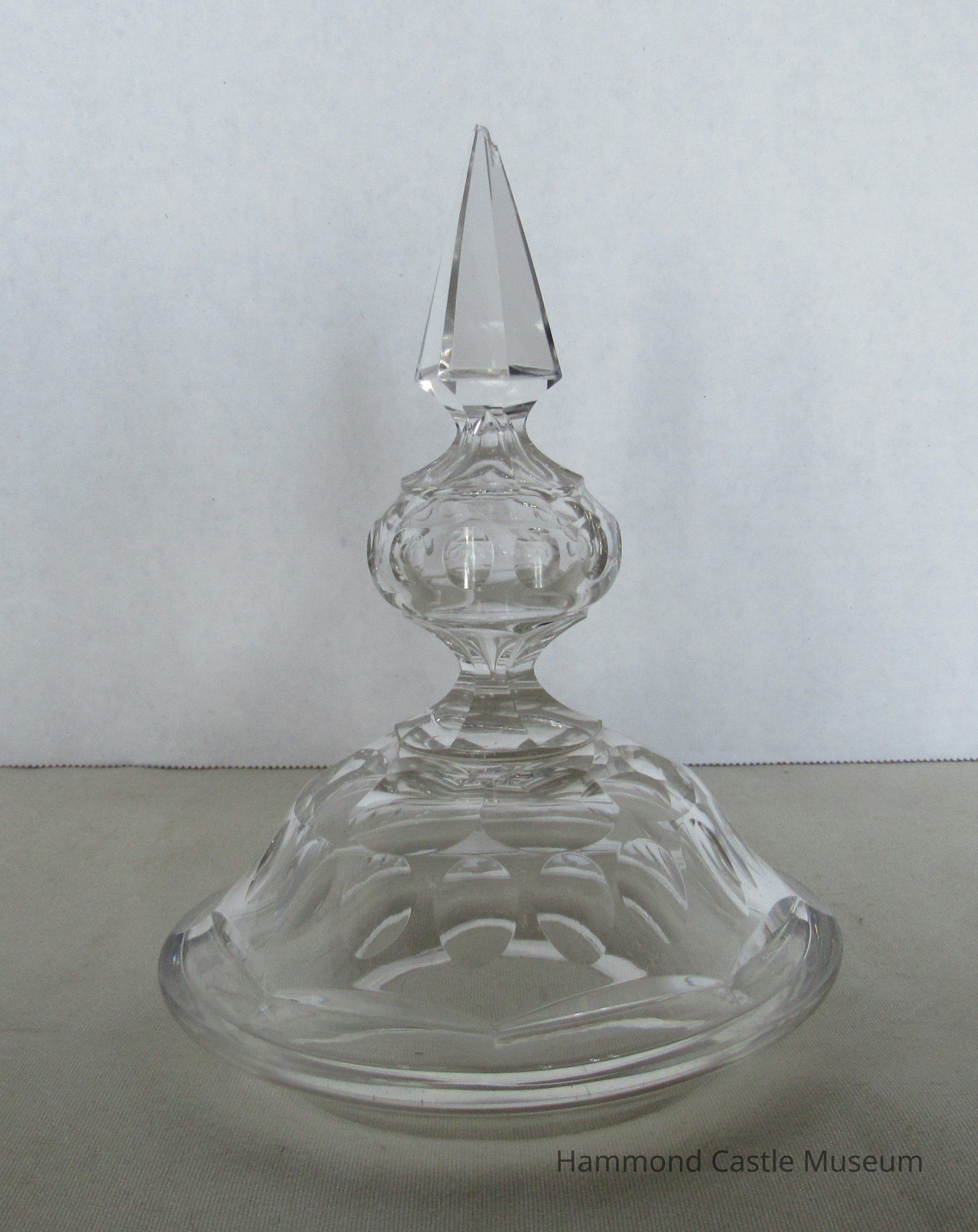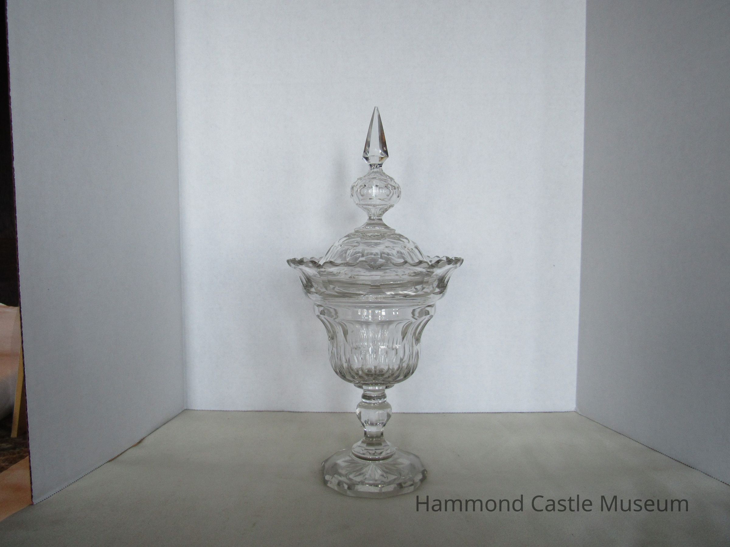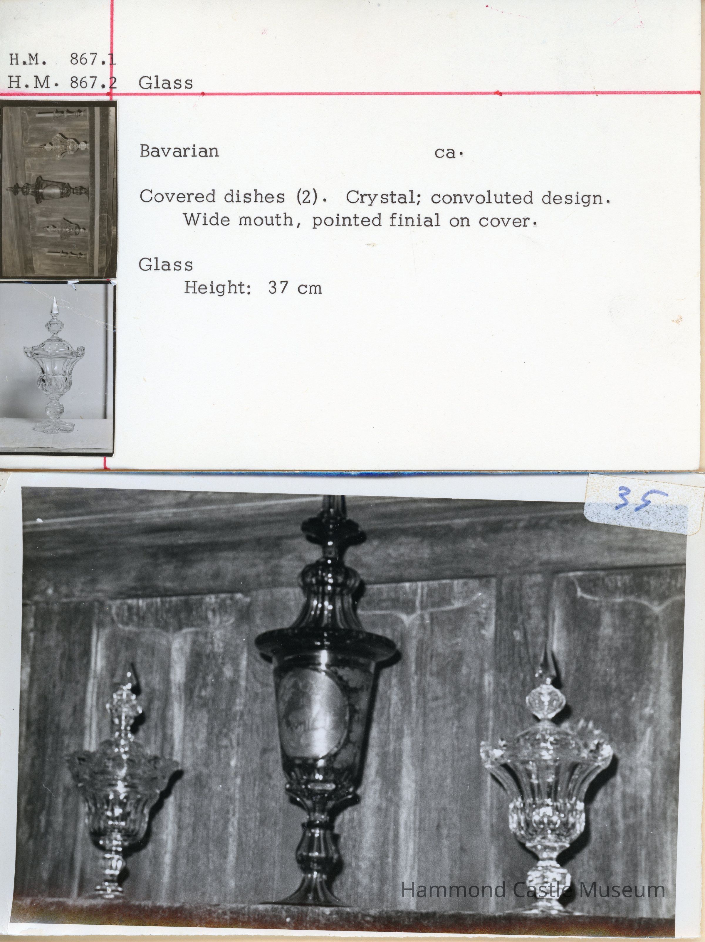 Set of 2 covered dishes. Bavarian Crystal; convoluted design. Wide mouth, pointed finial on cover.