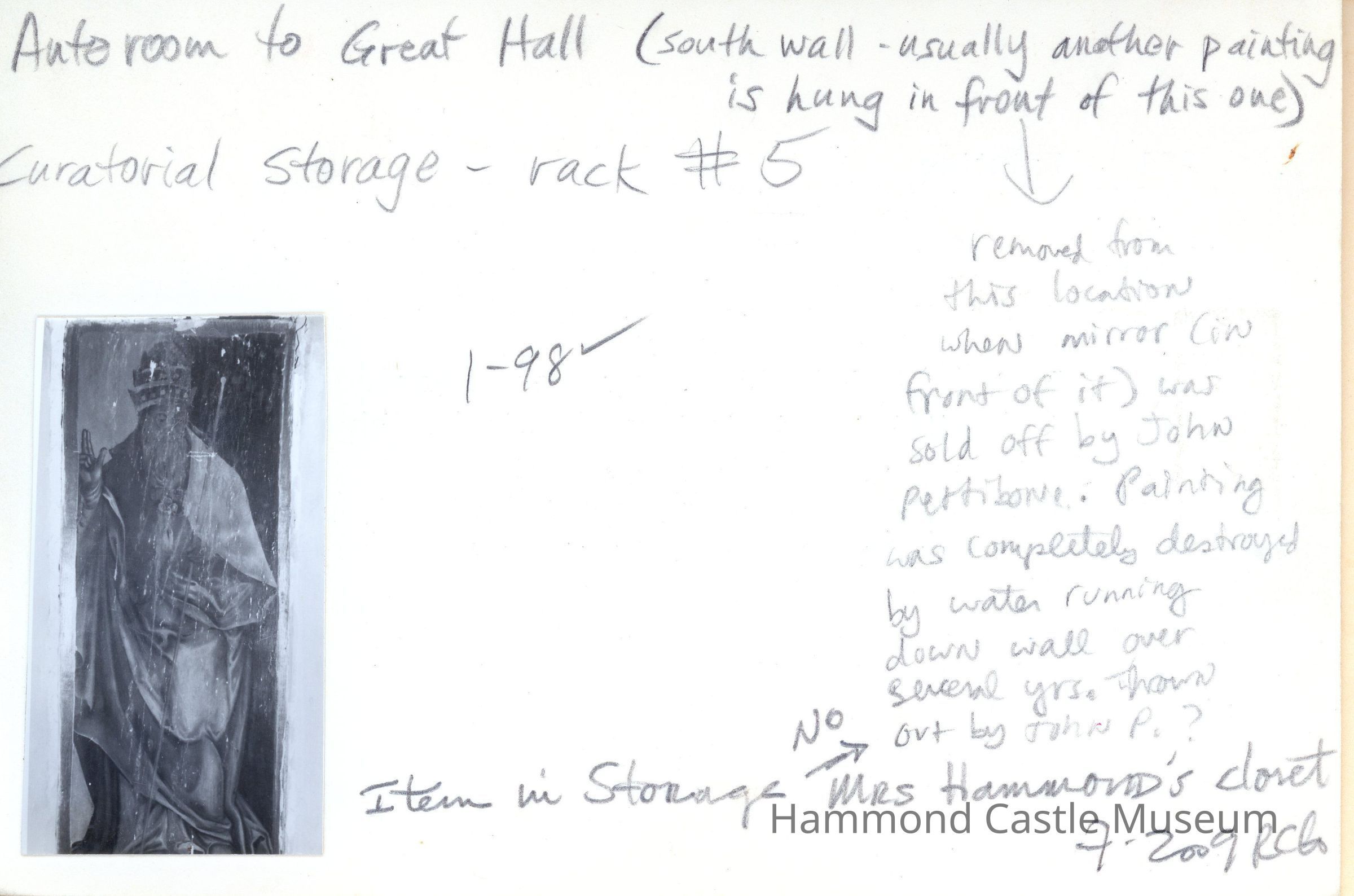 1991 Curatorial Storage inventory, p(1-5)