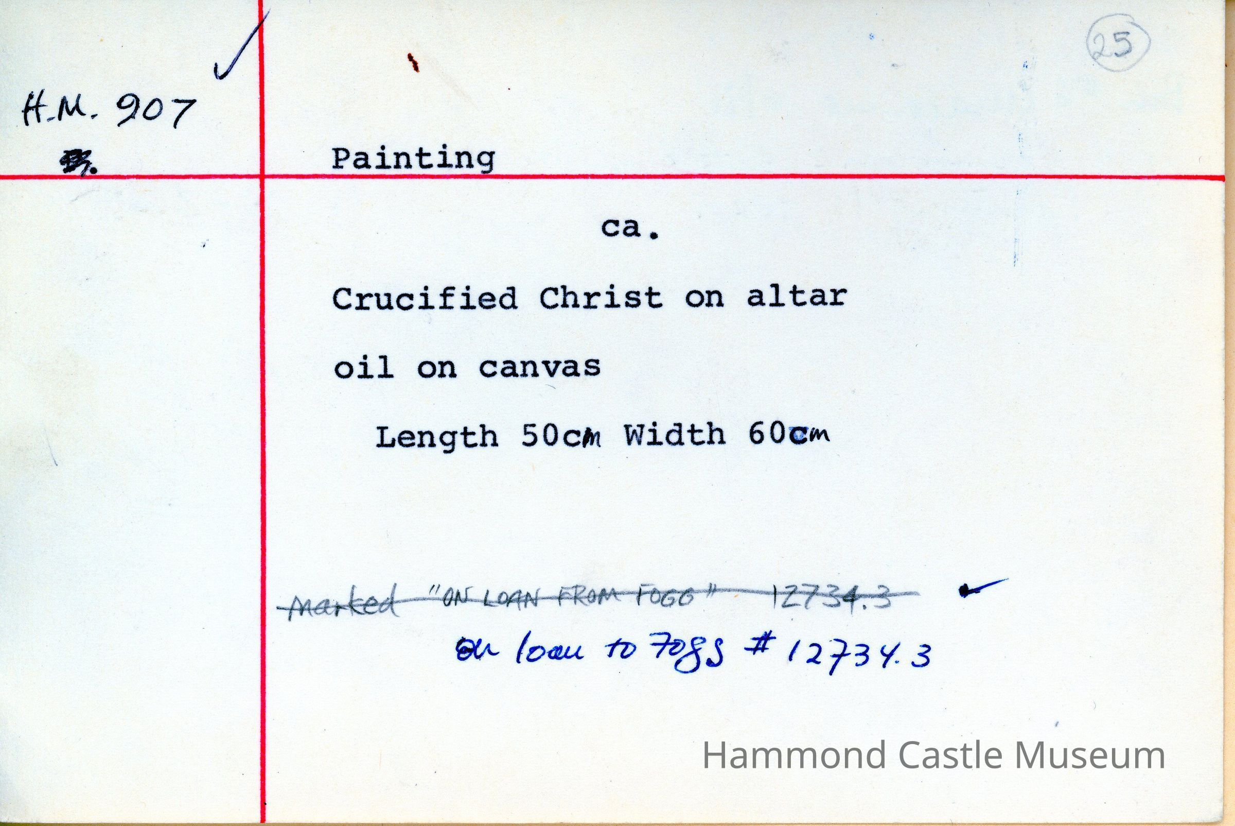 Painting of Crucifix on Altar "CHRISTUS NOBIS CVM STATE" along the altar front edge Translation - Christ state (speak or pray) for us Heavily crackled