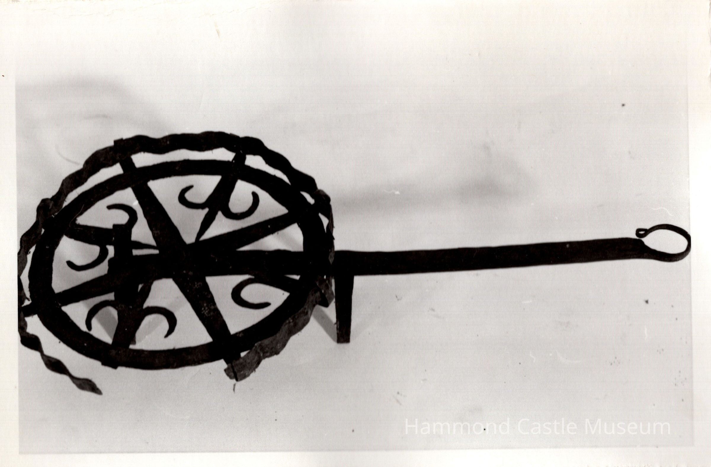 Part of fireplace set. d. Rotating Pot Grill Iron, hand-made.