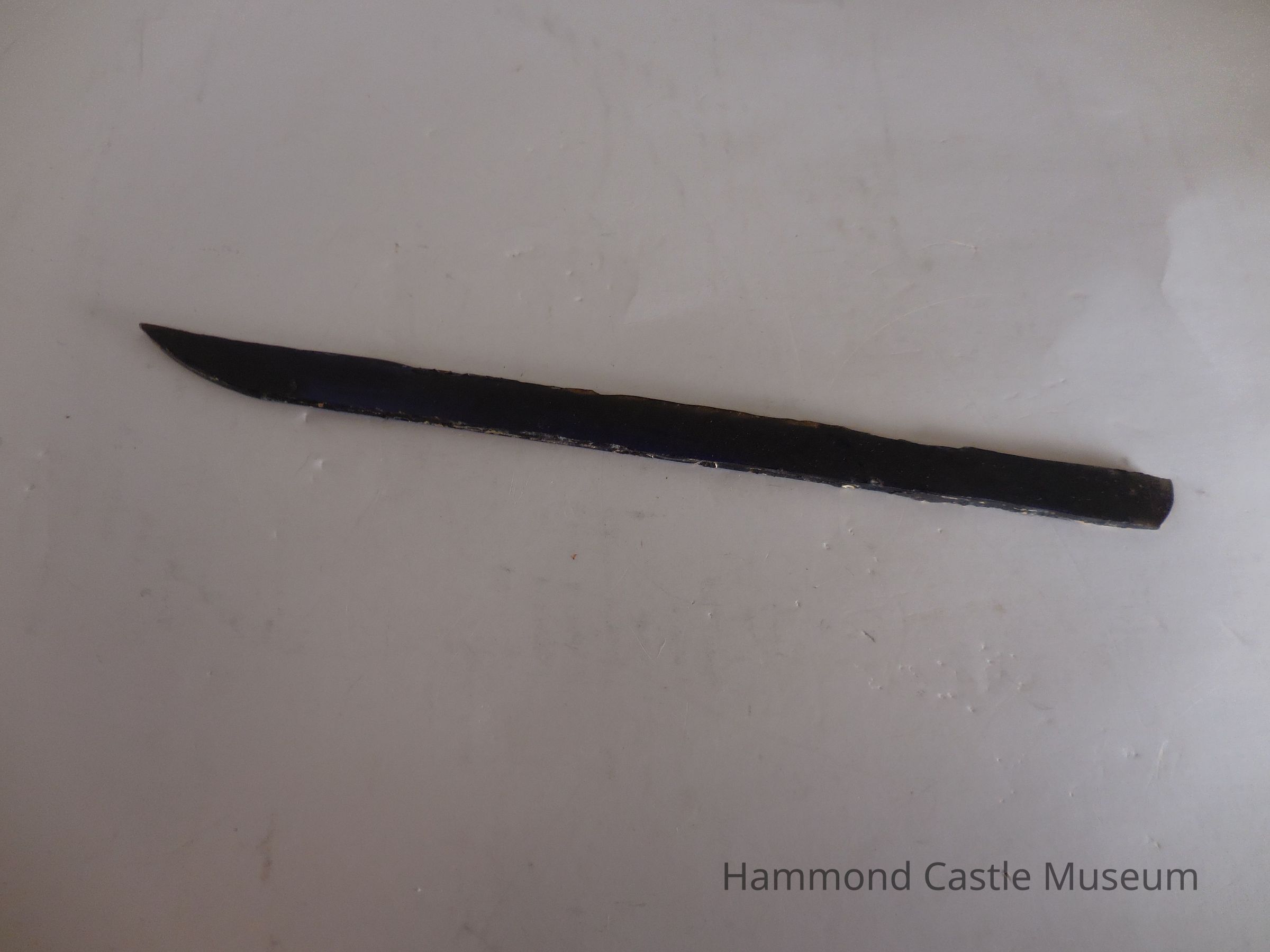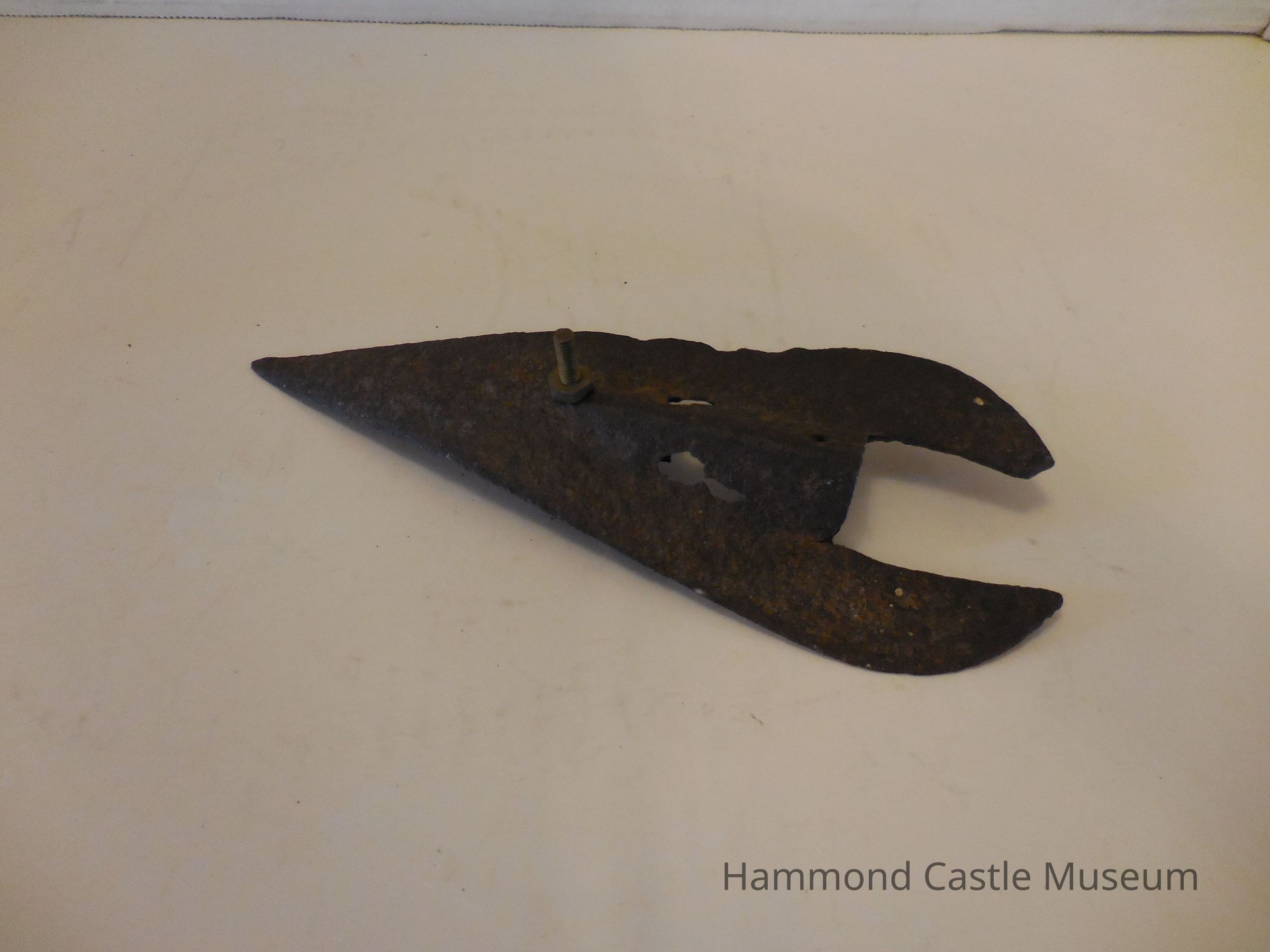 ** (From catalog card) We have many miscellaneous pieces of iron. The 13 indicated here may be any of them. This probably relates to those pieces formerly displayed in the English Court Cupboard in the first level Tower Galleries. Compare: H.M. 533 through H.M. 539 with the photograph of the court cupboard filled with objects. Photo is filed with oversized photos, and reproduced in the 1966 guidebook, pg. 71.Collection