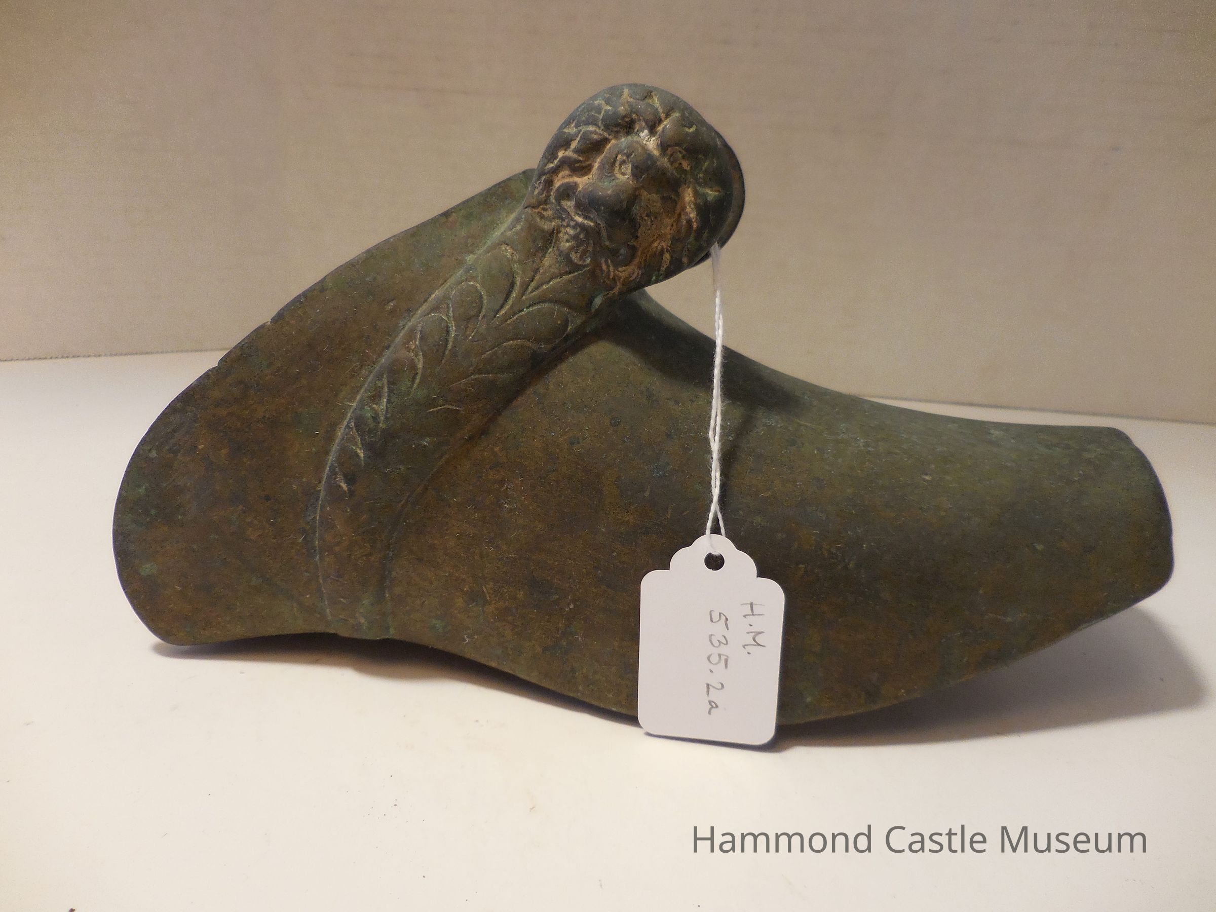 Left foot of a pair of iron front foot stirrups. Iron, highly encrusted. From Isabella, Santo Domingo, and brought over on Columbus' 2nd expedition Purchased during Hammond's Caribbean travels