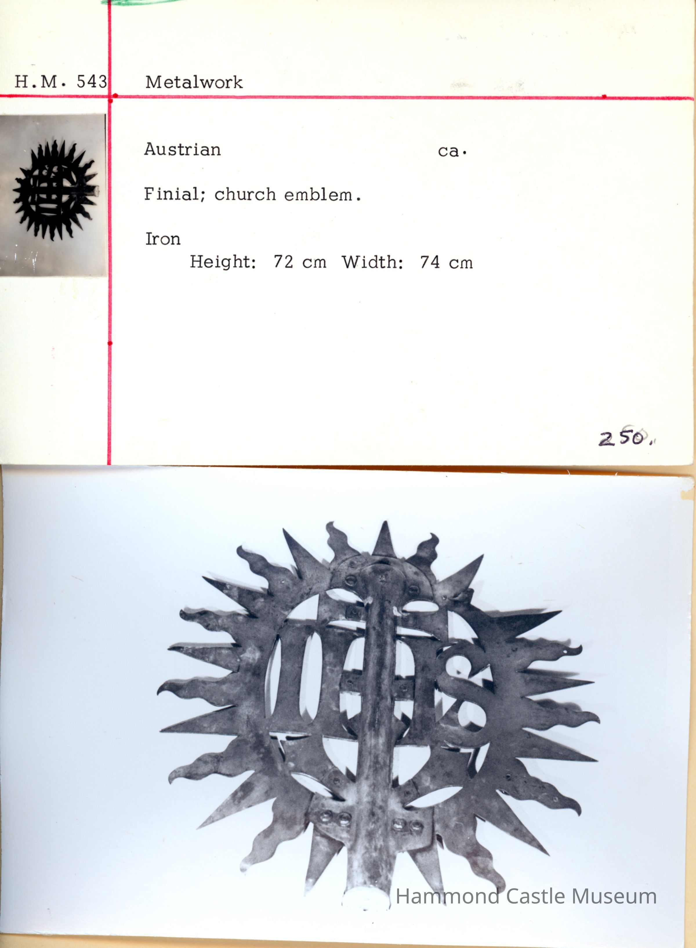 Austrian Tyrolean Finial; IHS cross church emblem (IHS = Jesus)within sunburst