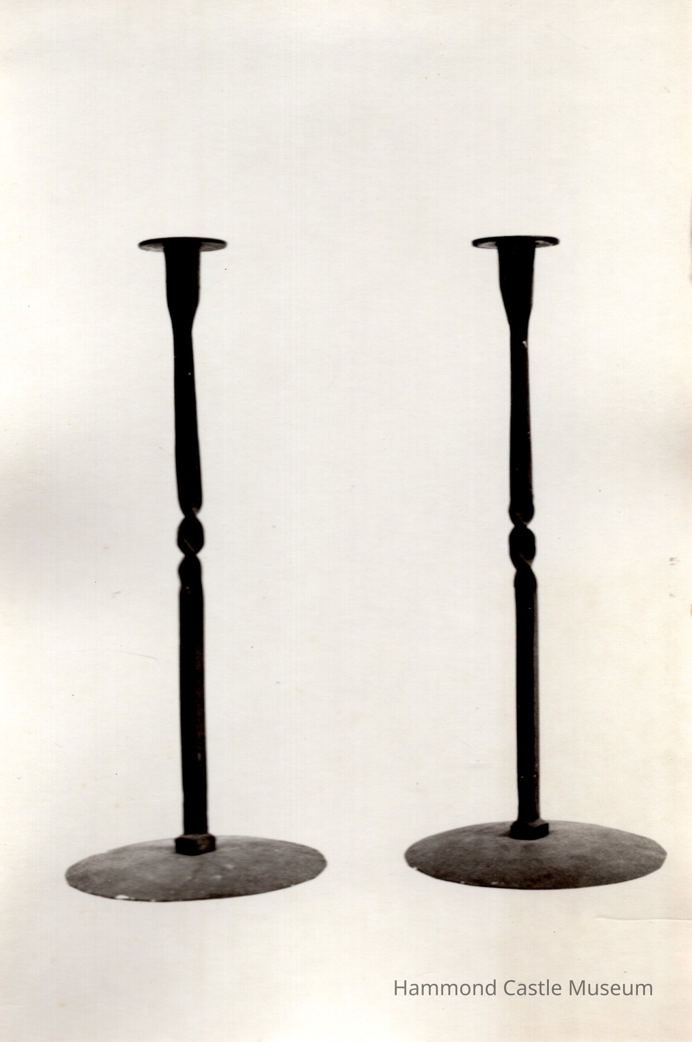 Set of 2 candlesticks; slim with single twist at center, flat circular base.