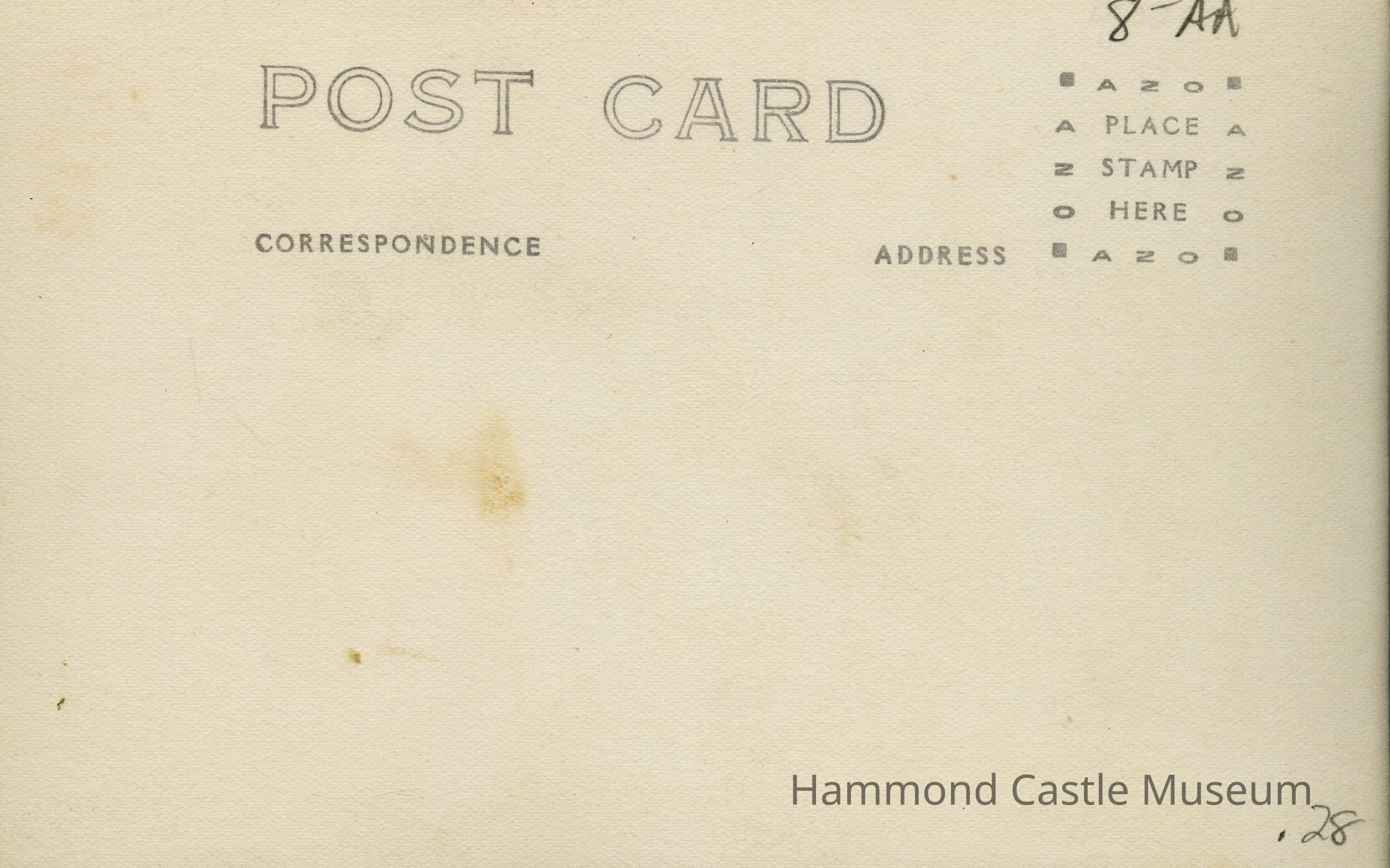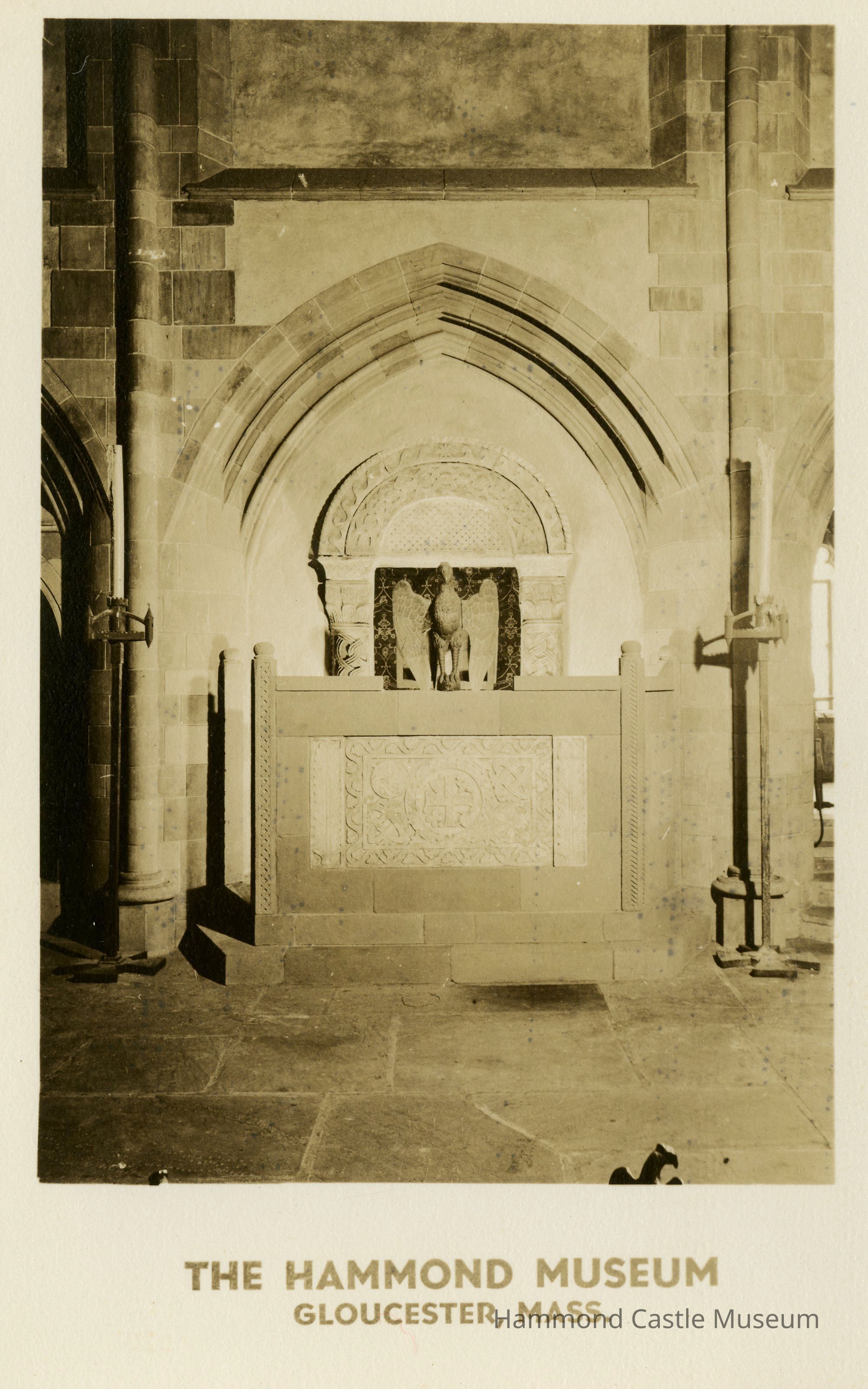 Early postcard of Great Hall bishop's nook with curtain, pre- organ balcony