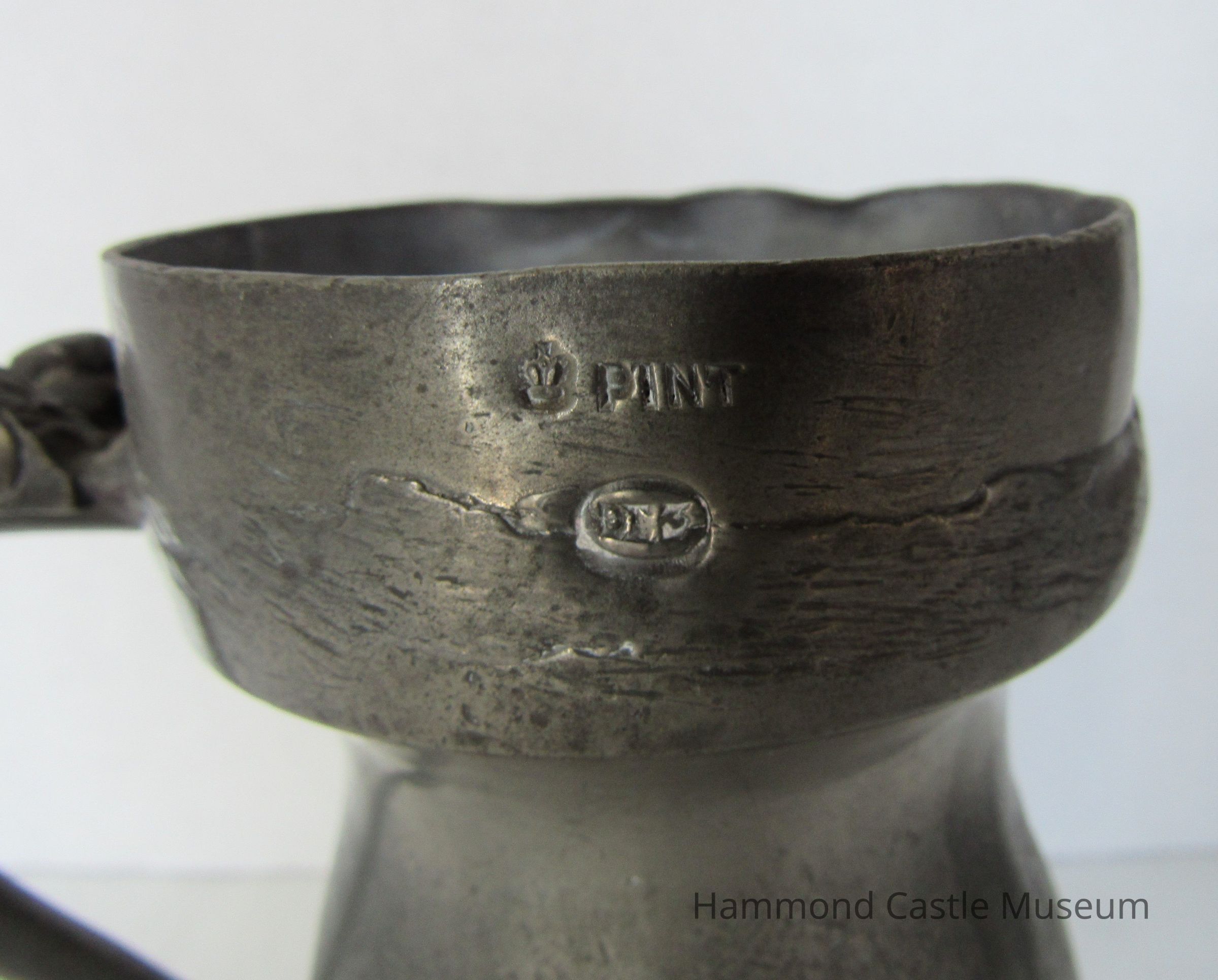 Pewter Tankard Converted to English Imperial pint measure, markings on outside rim: see catalogue card.