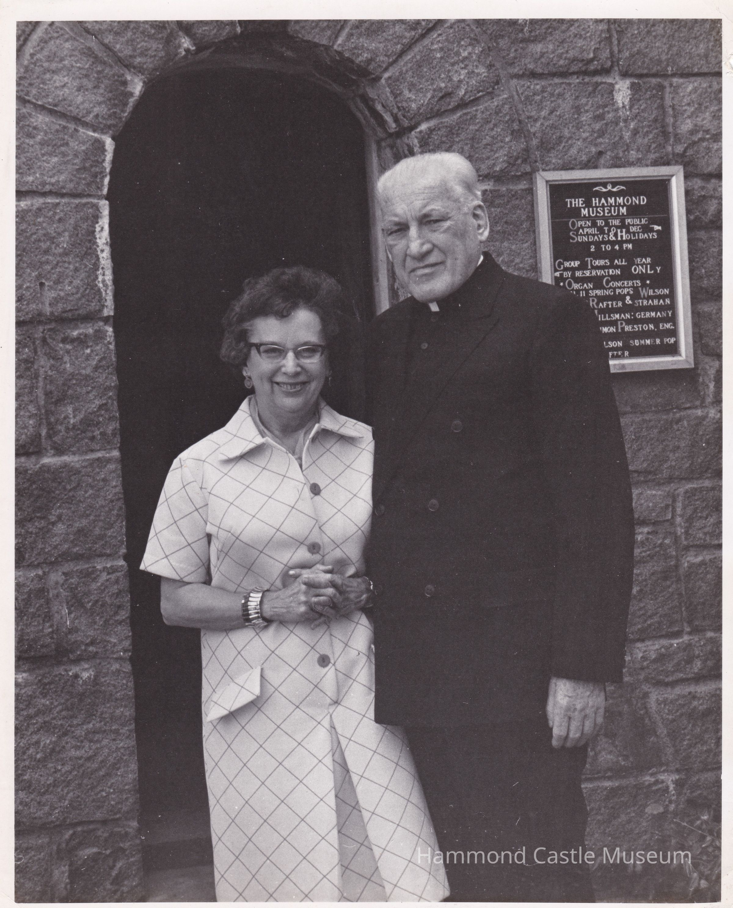 Photo taken1966 ca of Mrs. Corinne Witham with Cardinal Cushing