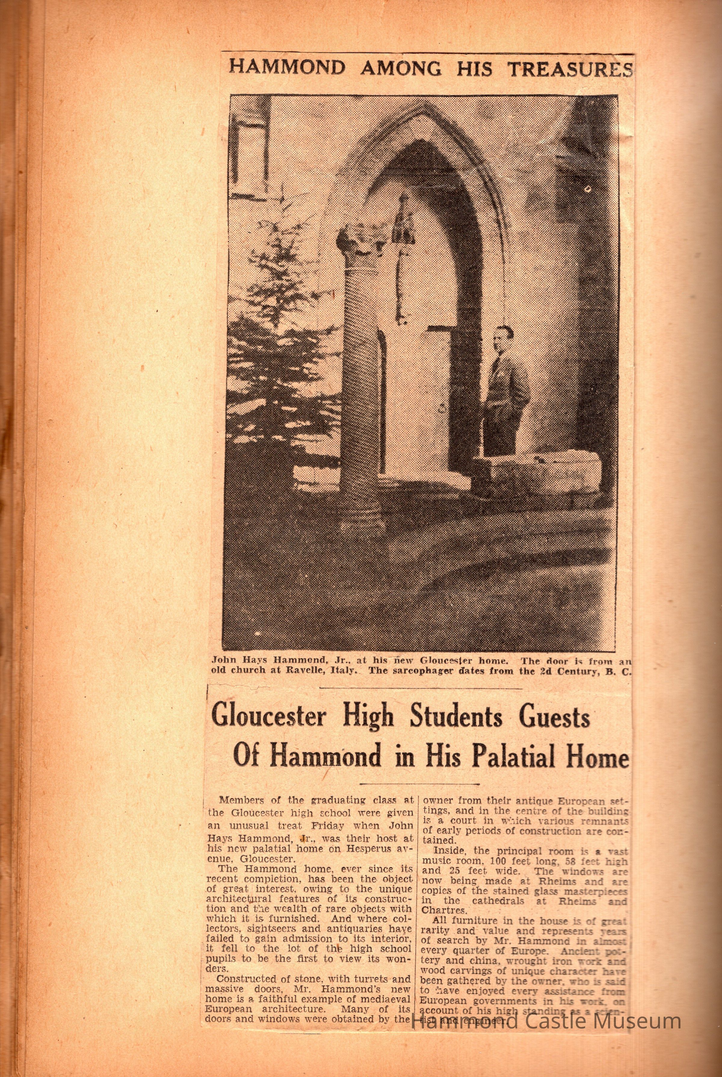 JHHJr scrapbook of the castle 191928-1950s Photos and articles about the castle, family, Willett & Hammond Washington D.C. house
