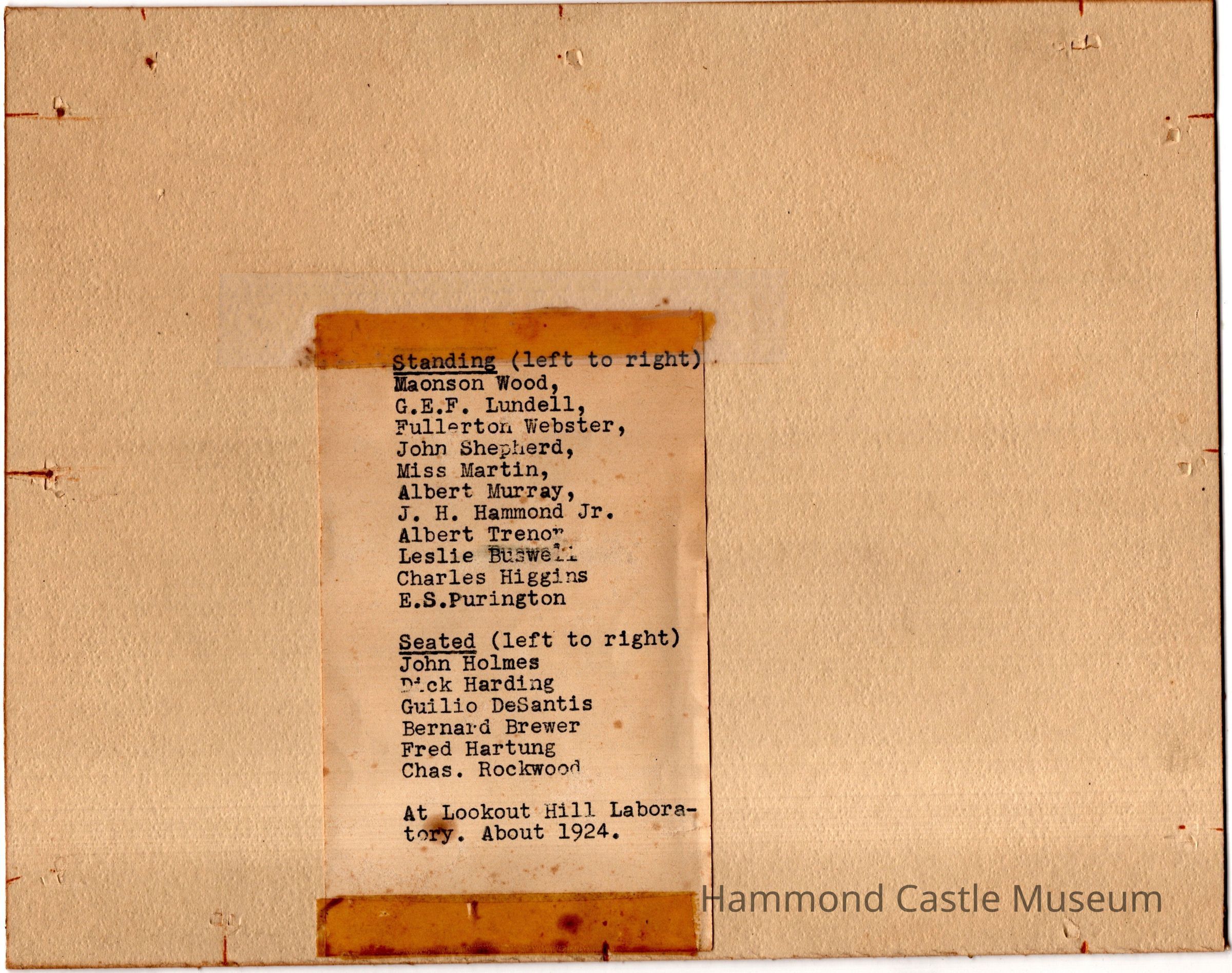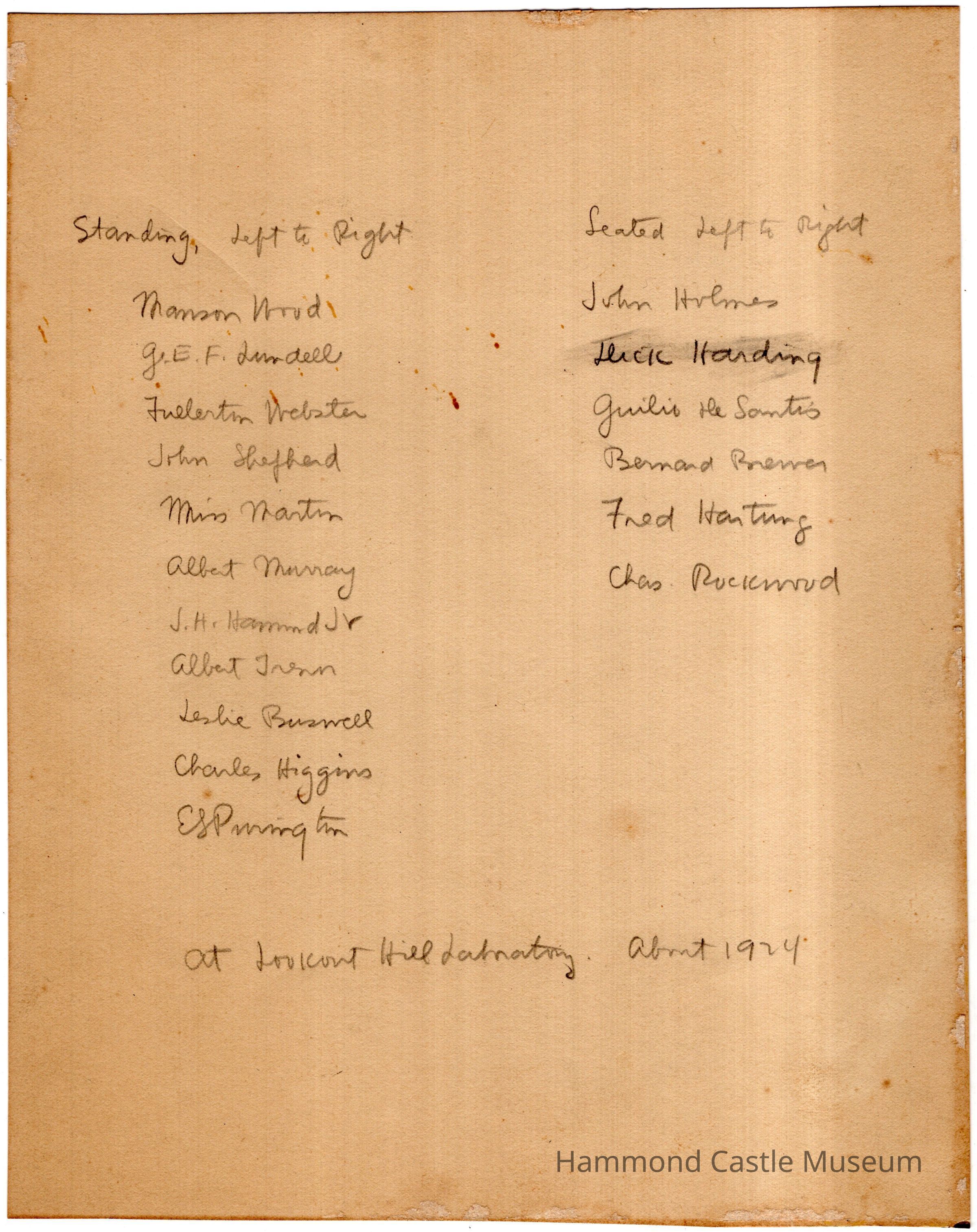Photo of Hammond Research Laboratory Staff with name list, 1924 ca