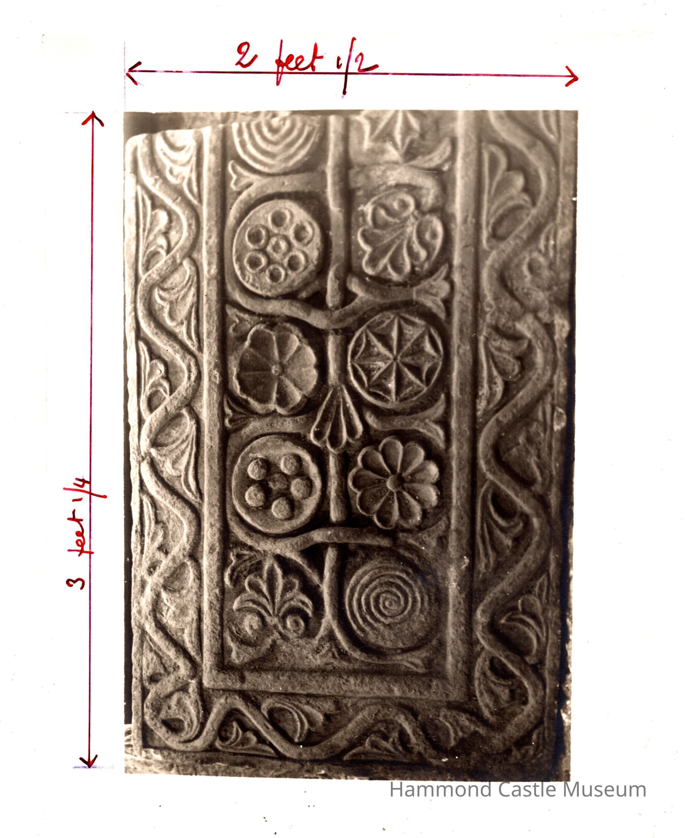 Craved stone panel w floral decorations located on the wall within the courtyard. Italian, circa 9th century Probably 20thc reproduction