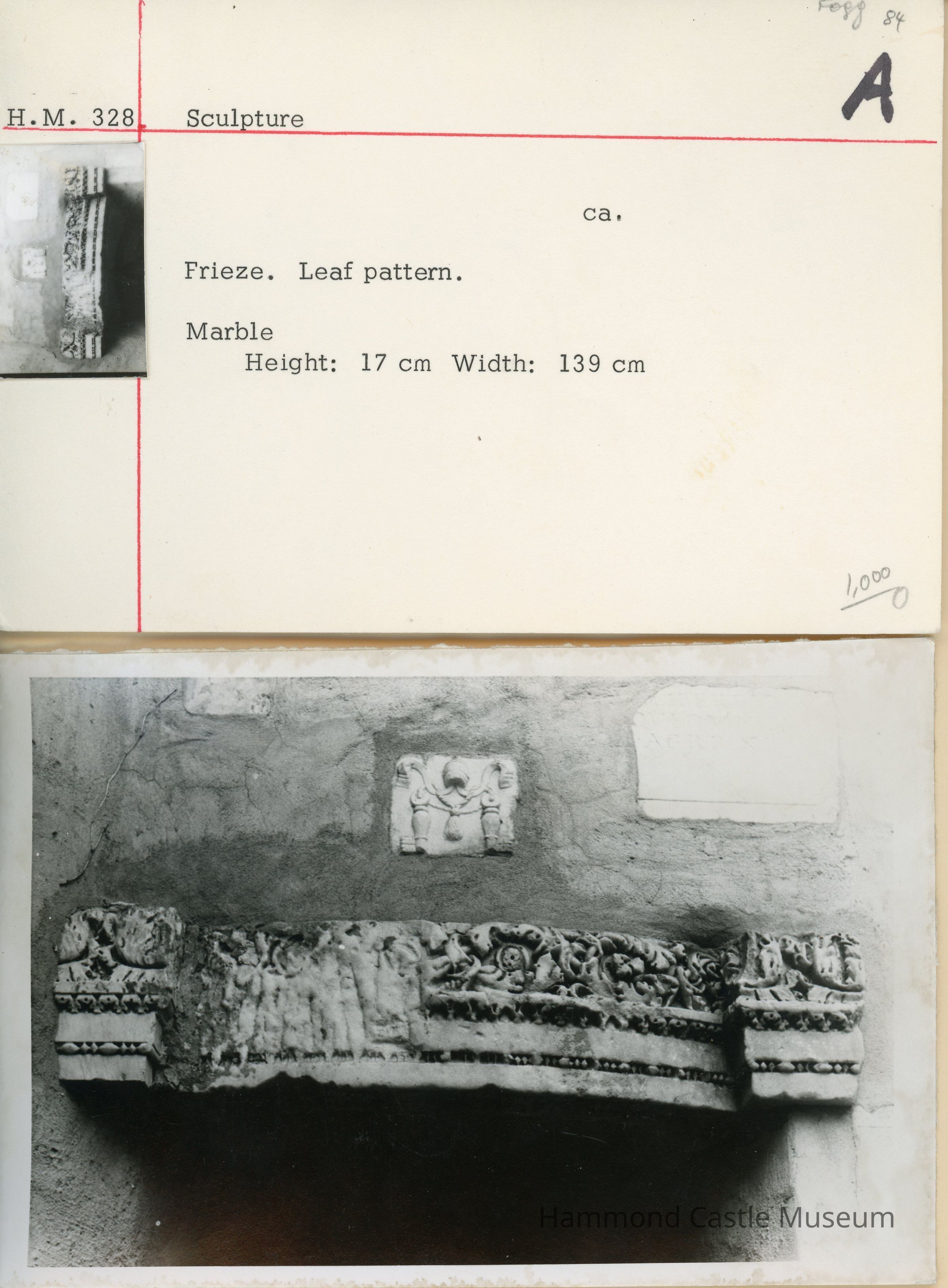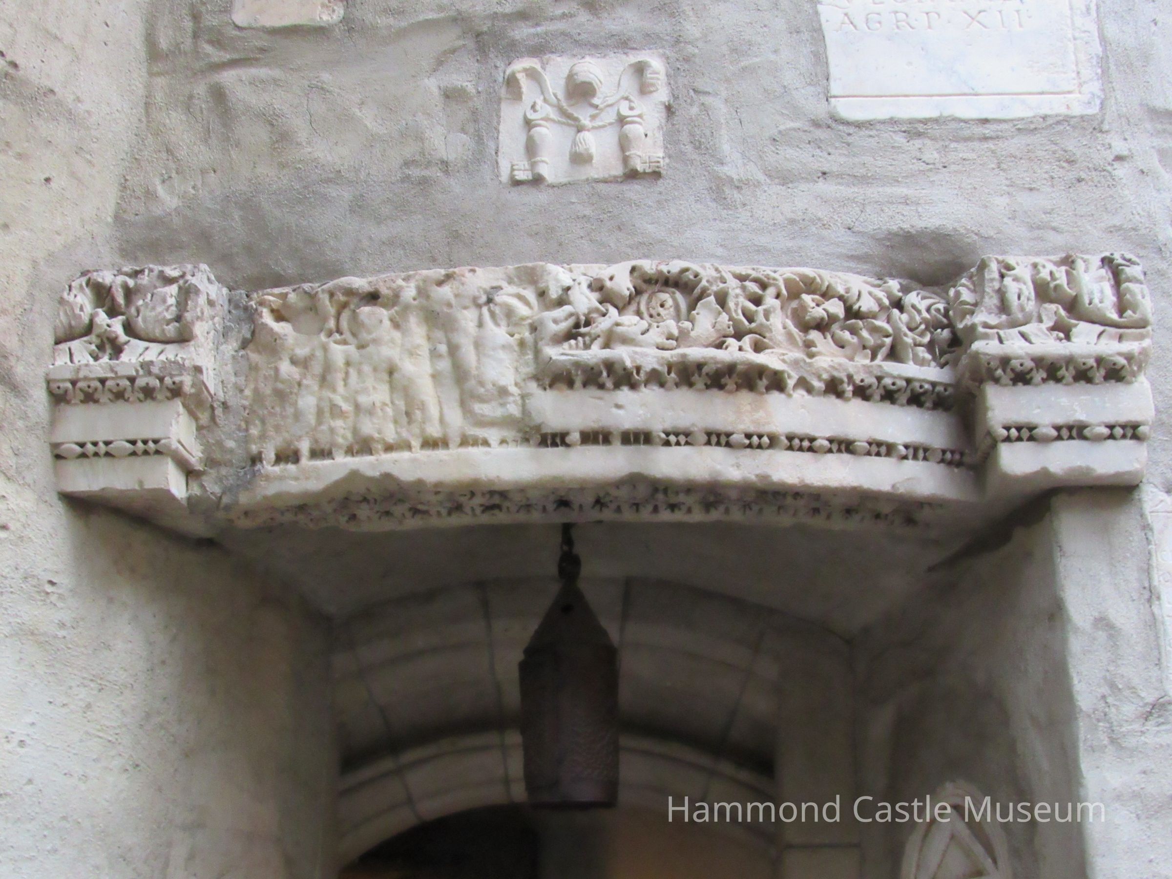 Lintel frieze made of marble. Floral pattern w inserted fragment w multiple figures over spiral stair entrance 3rd to early 4th c