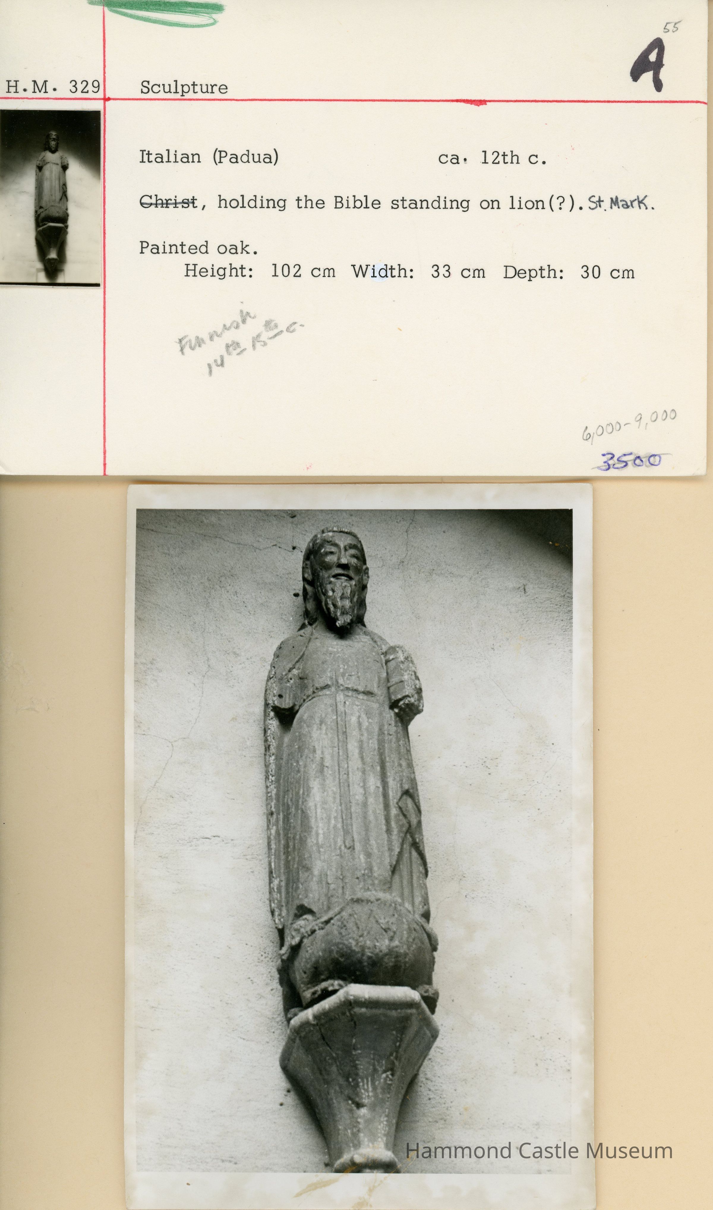HM329 carved wood saint, possibly Mark, ca 12-14thc infoNote Type