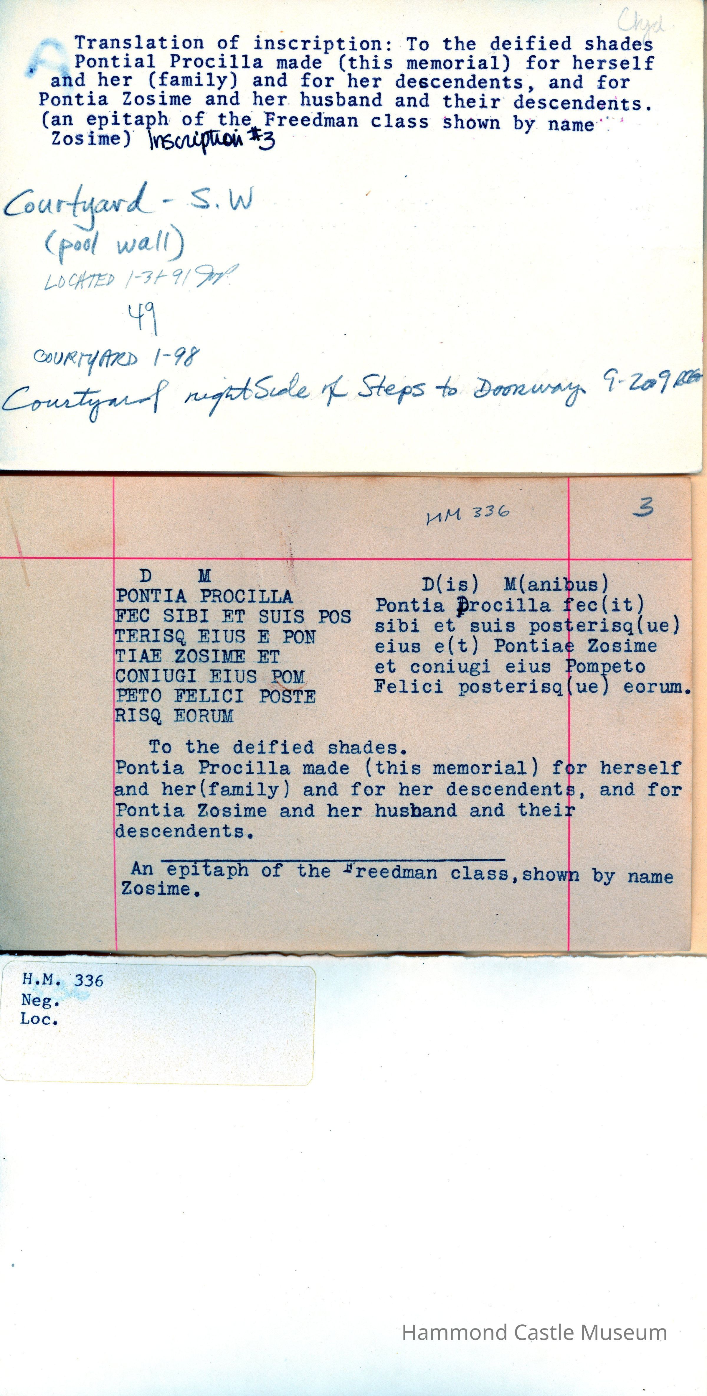 [USEP HCM.L.Tmp97.6.39] HM-336 Epitaph of Pontia Procilla - Altar