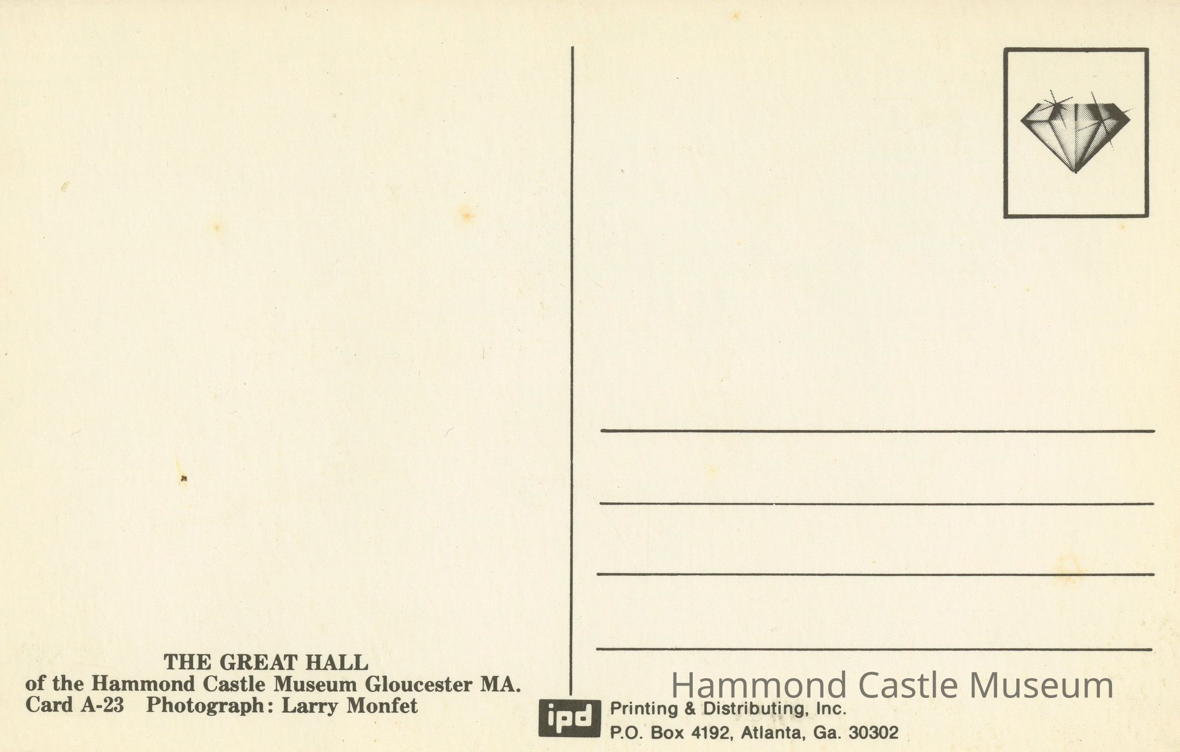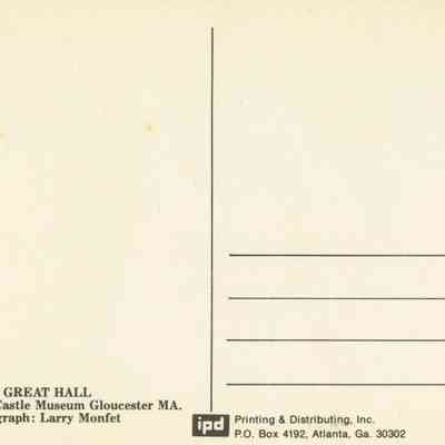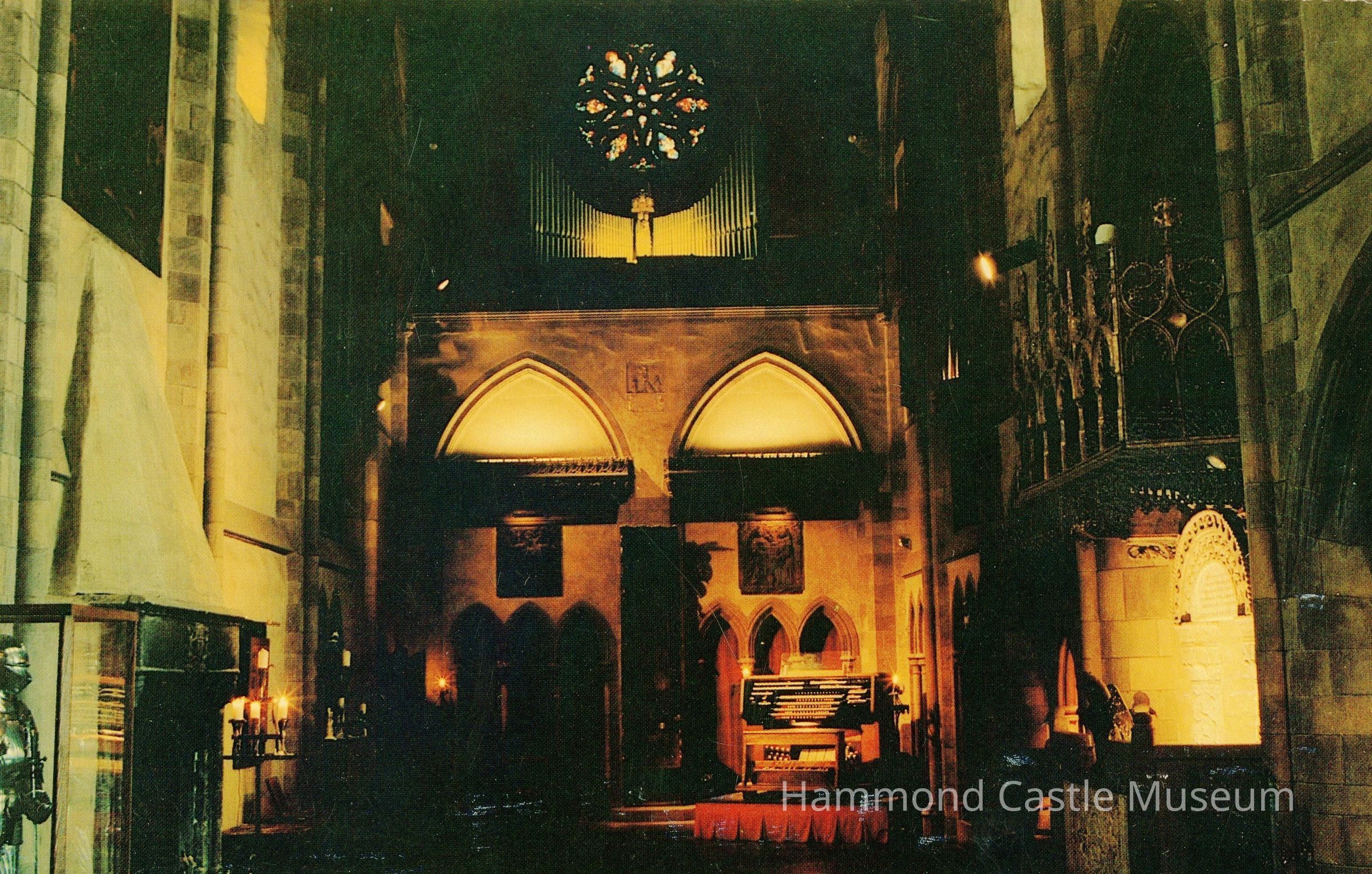 Postcard of Great Hall at Rose Window end, console on floor, wooden plaques in place Image by Larry Monfat