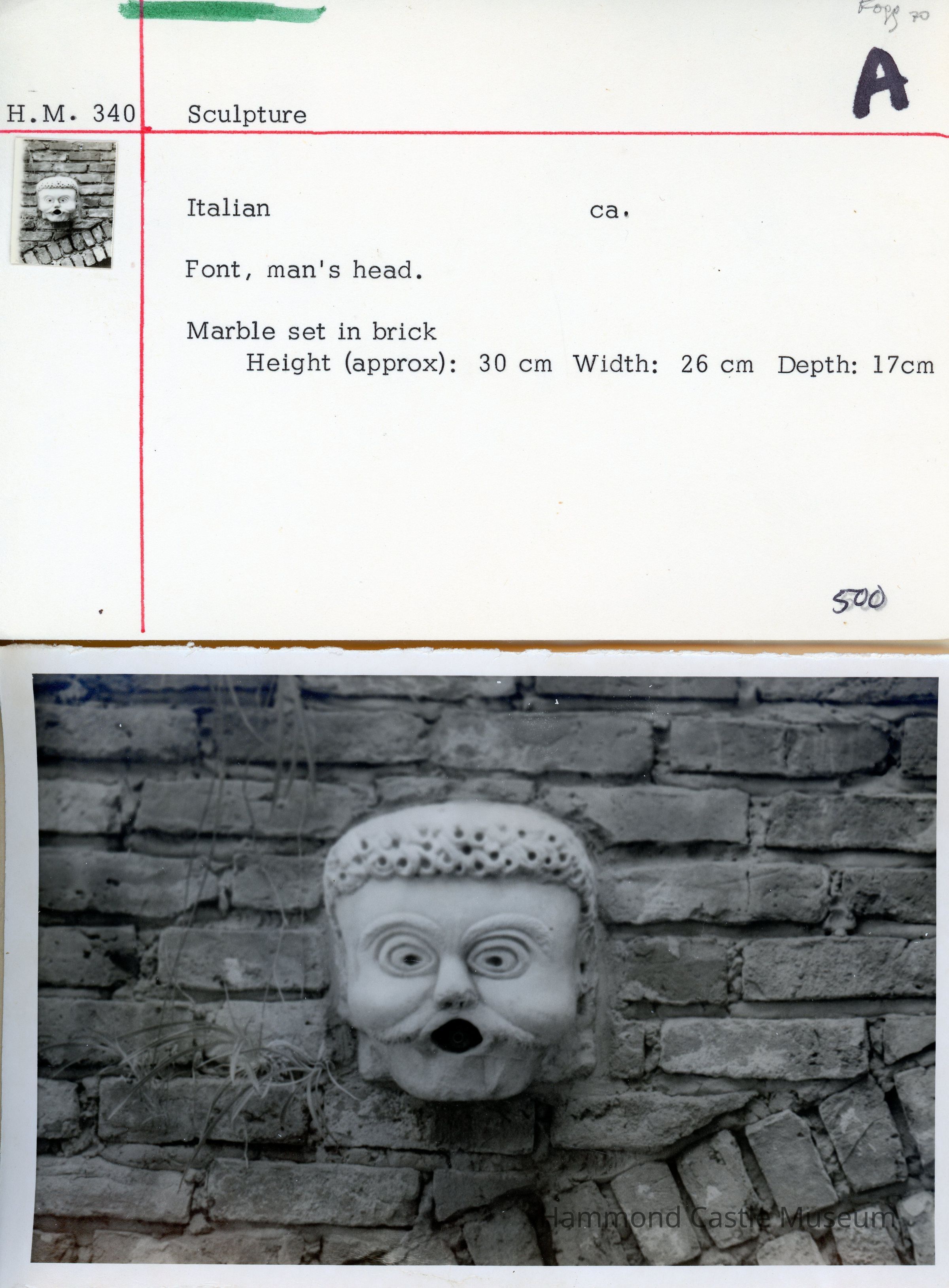 Font shaped like a man's head. Referred to as "Urna" head (Buddha head) Italian Purchased 1927 with cow head fountain