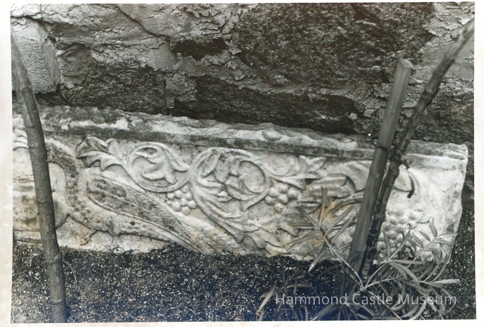 Set of 2 slabs. 358.1 : peacock and grape design in low relief 358.2 : grape/floral design