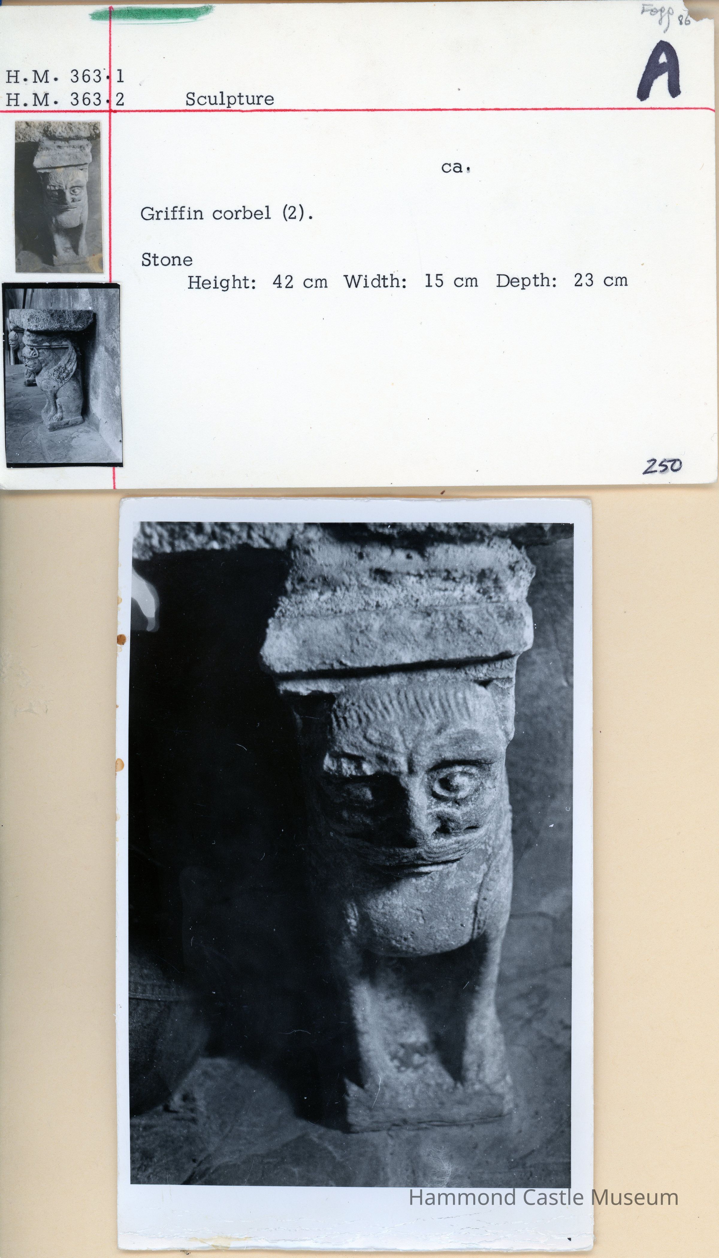 Set of 2 griffin-shaped corbels. Used to support bench on courtyard bridge