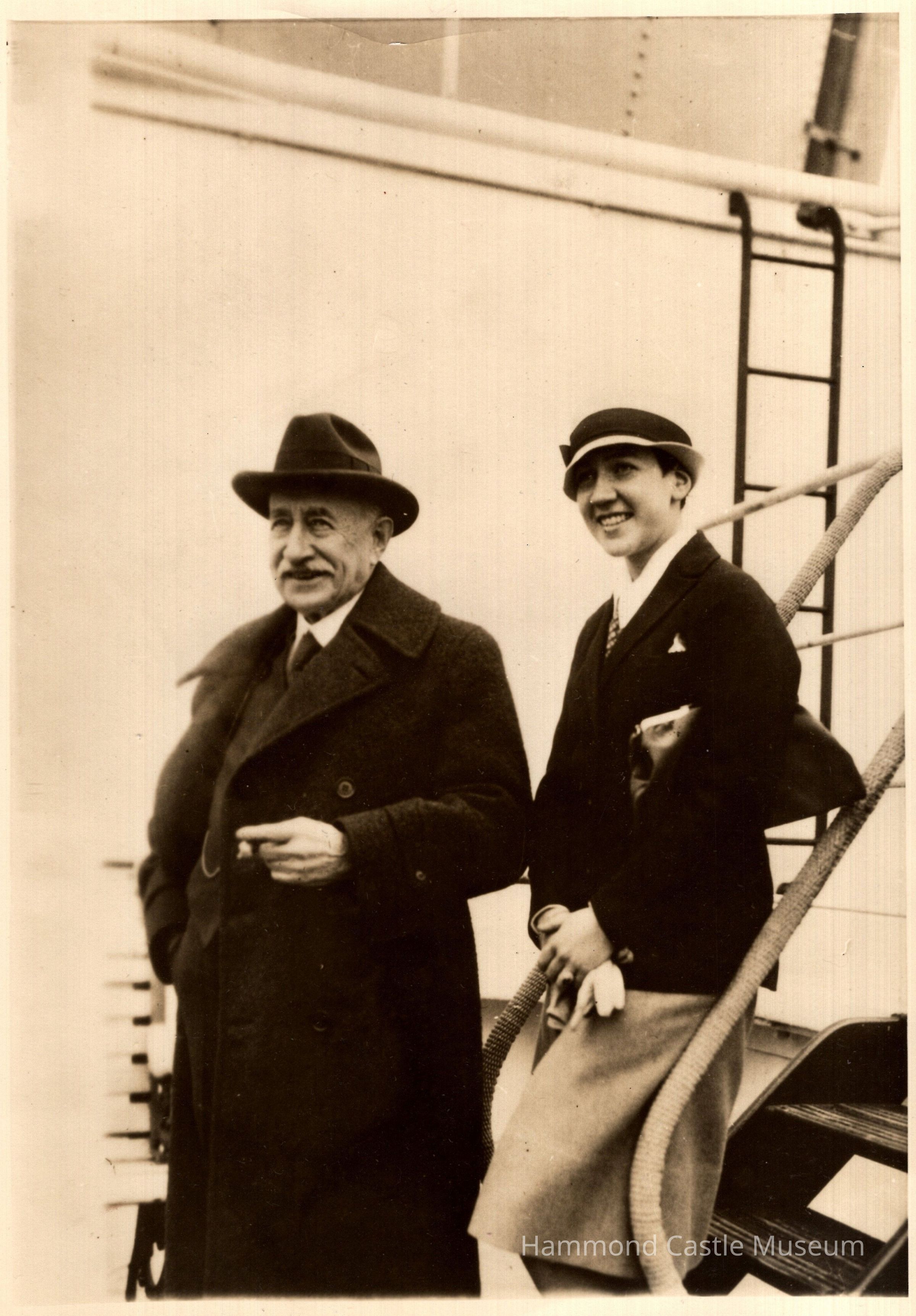 Hammond Sr with Natalie Hays Hammond on deck of ship, 1925 ca