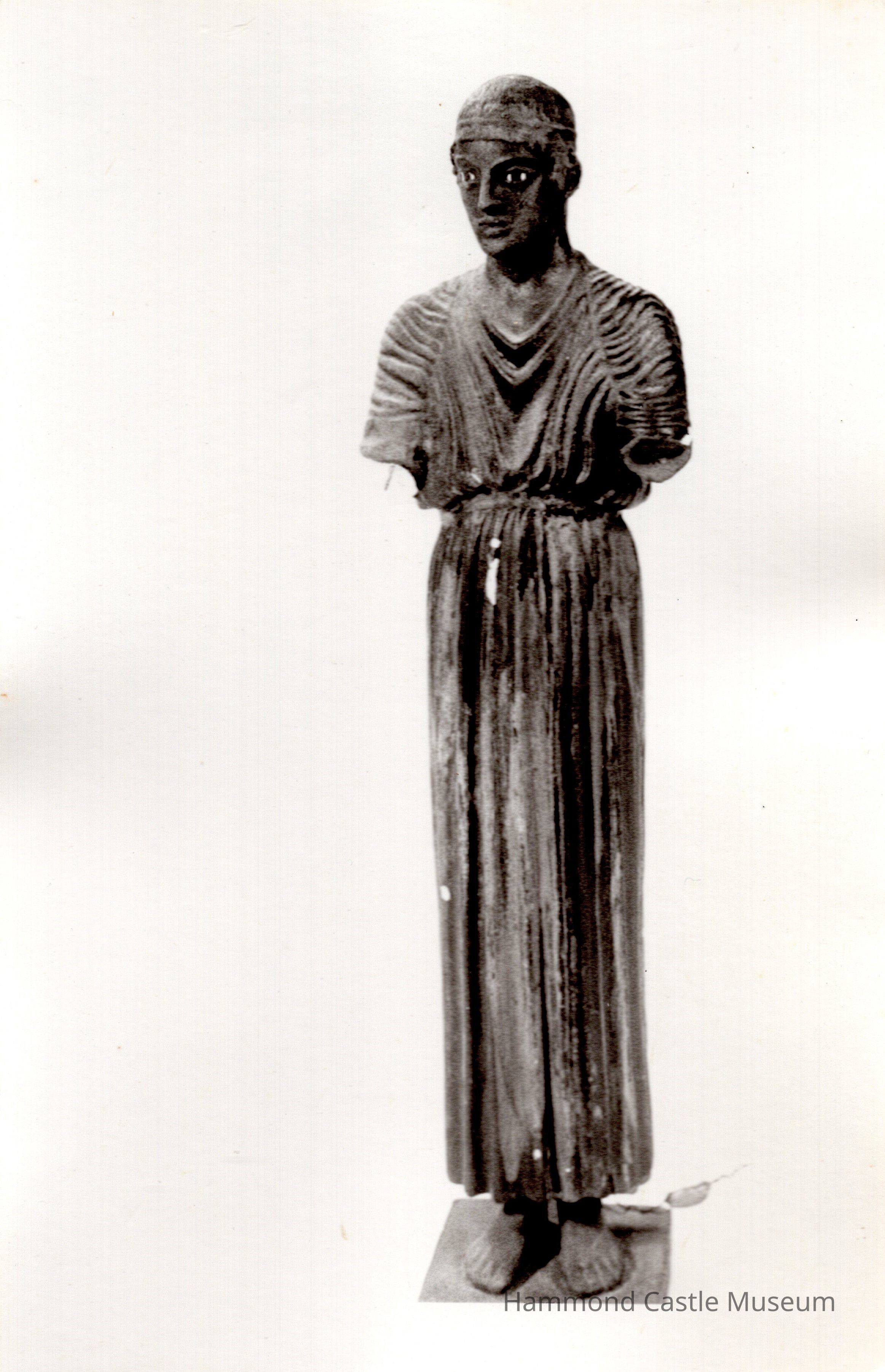"The Charioteer of Delphi". Reproduction of Greek hollow cast bronze of fifth century; black painted plaster.