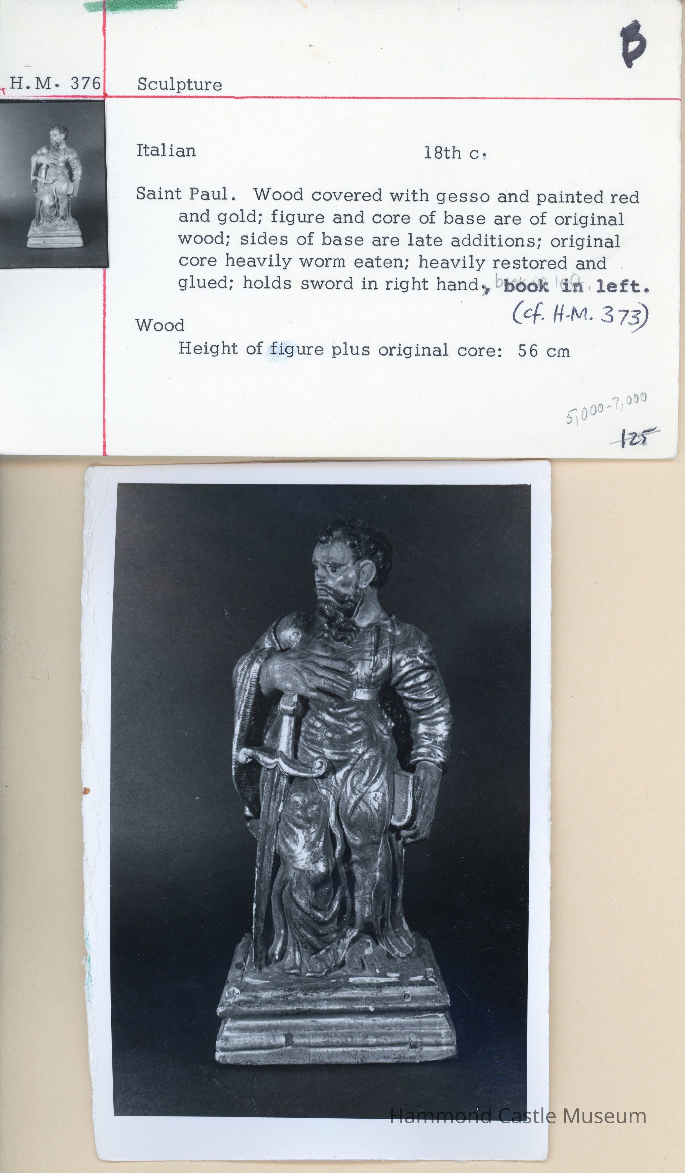 HM376 wooden St Paul carving, 18thc (1983 condition report)Note Type