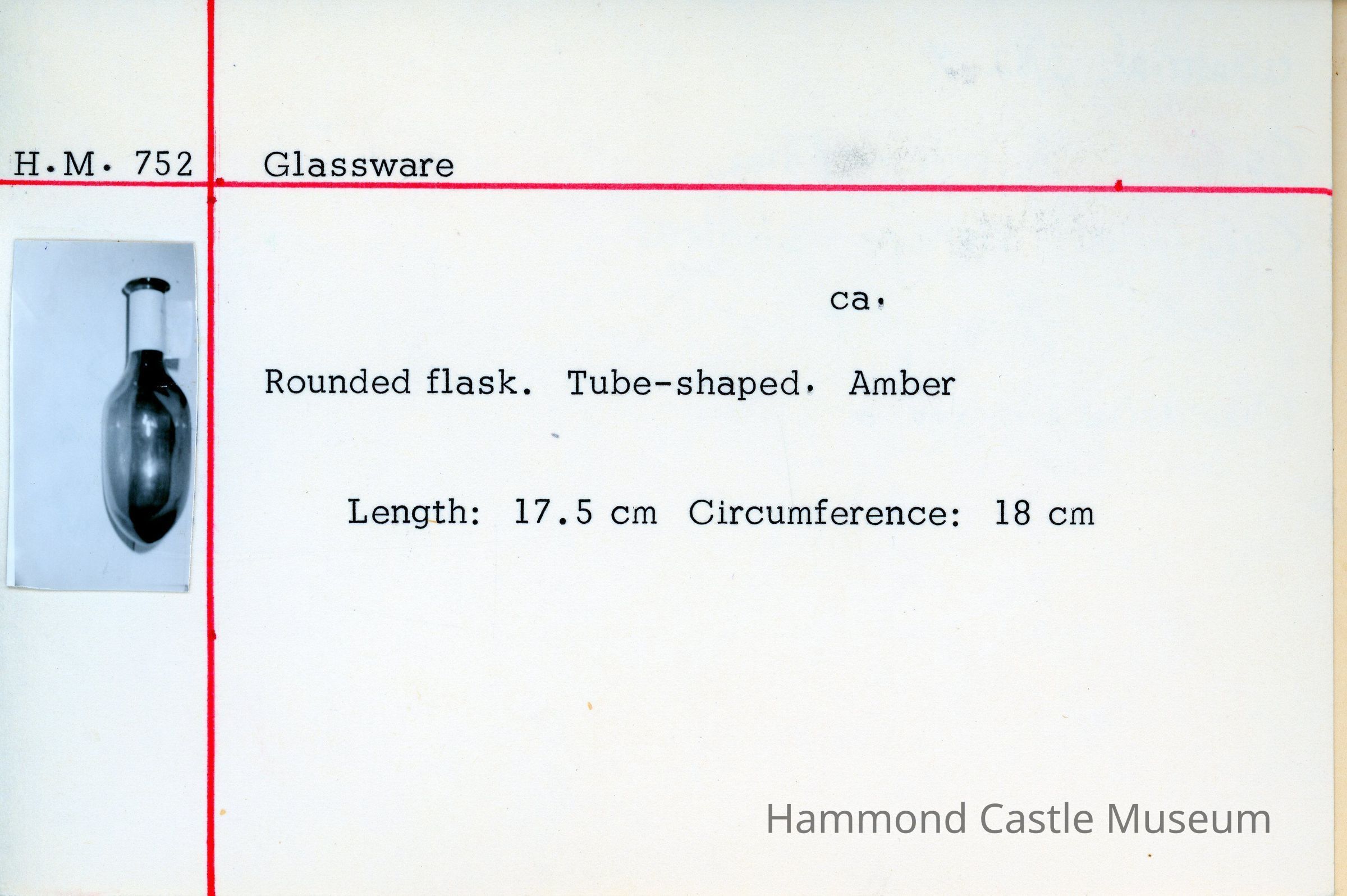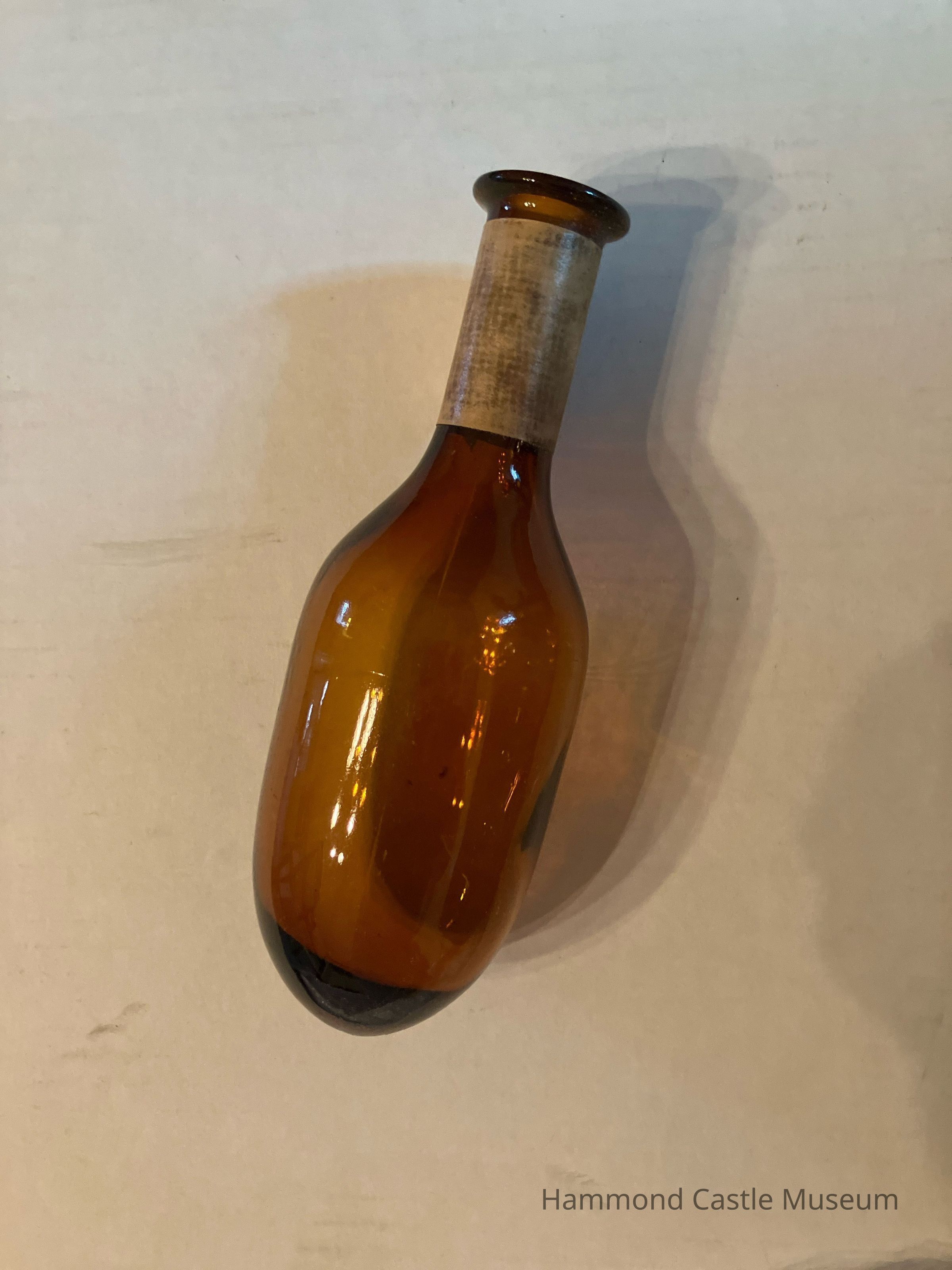 Rounded flask. Tube-shaped. Amber.