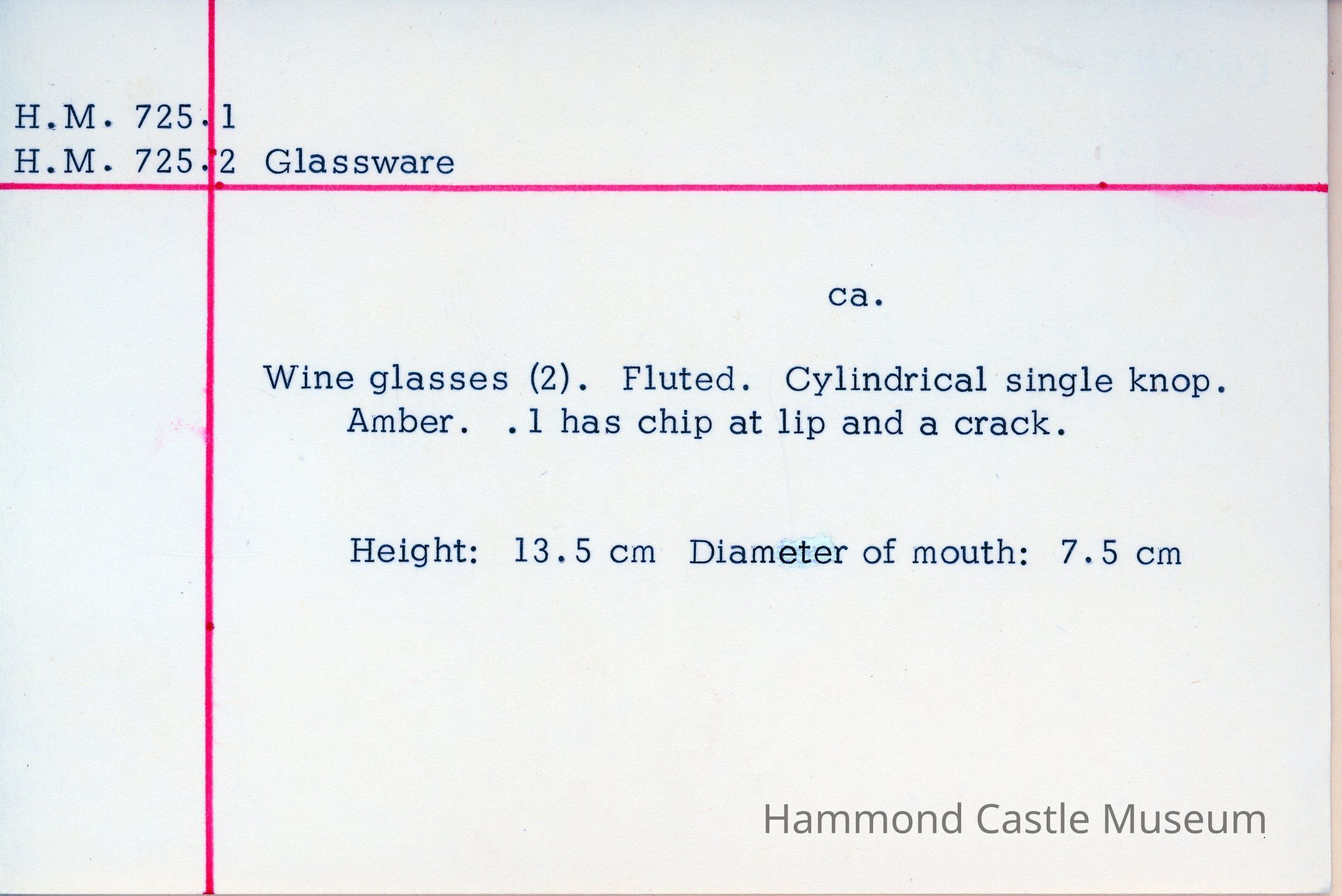 Set of 2 wine glasses. Fluted. Cylindrical single knop. Amber.