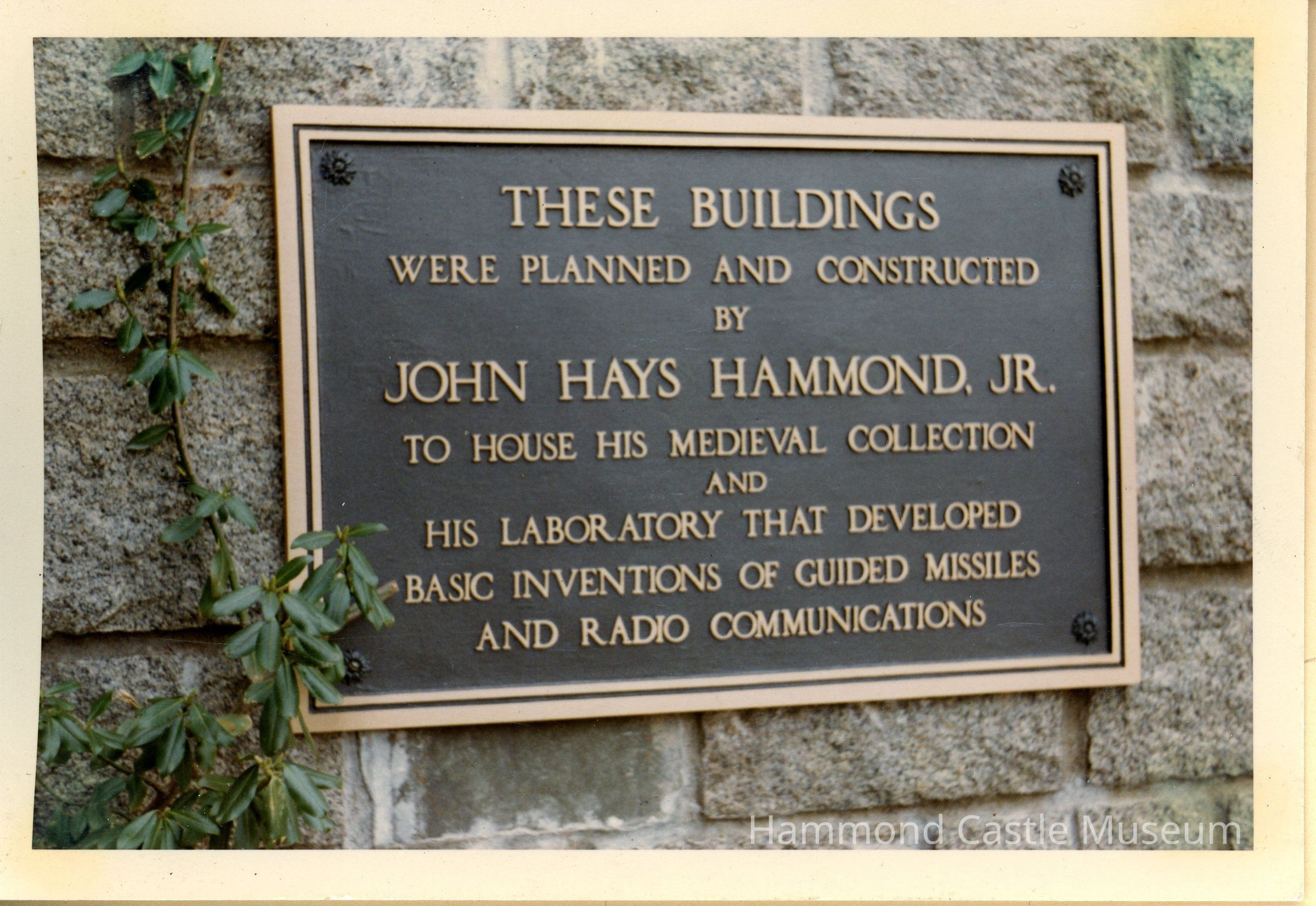 Photo of bronze plaque installed by Hammond at entrance Photo source unknown