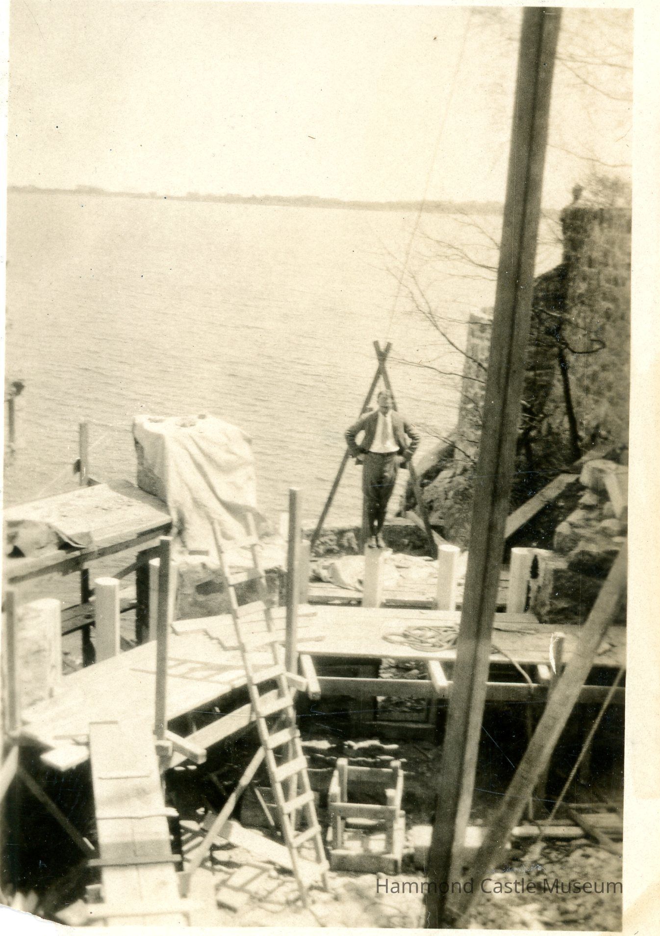 Photo of Hammond on construction scaffolding on tower Photo source unknown
