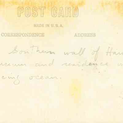 Early postcard of ocean side facade with buttresses, pre-Hearst lanterns