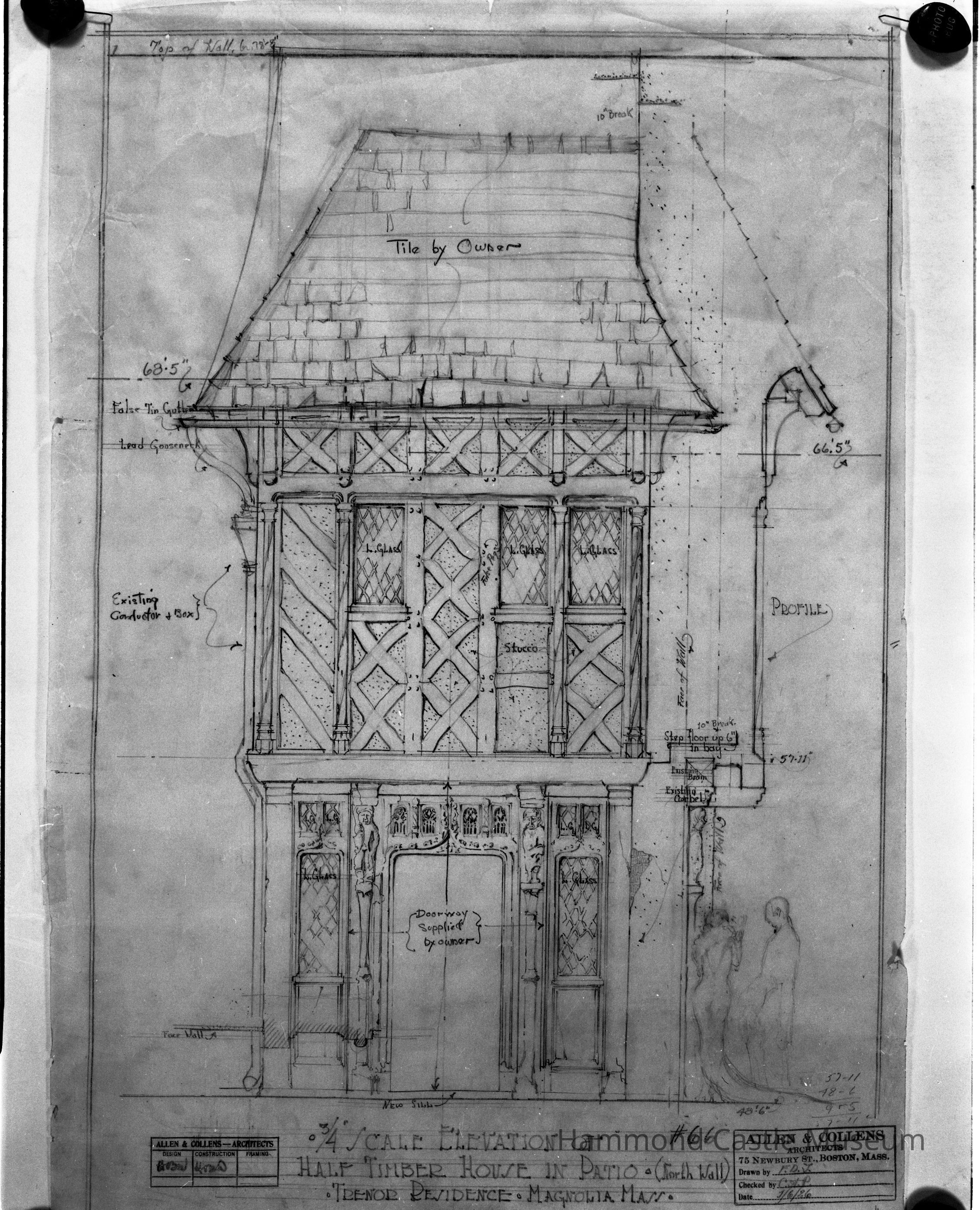 4x5 negative Early plans of facade, not used