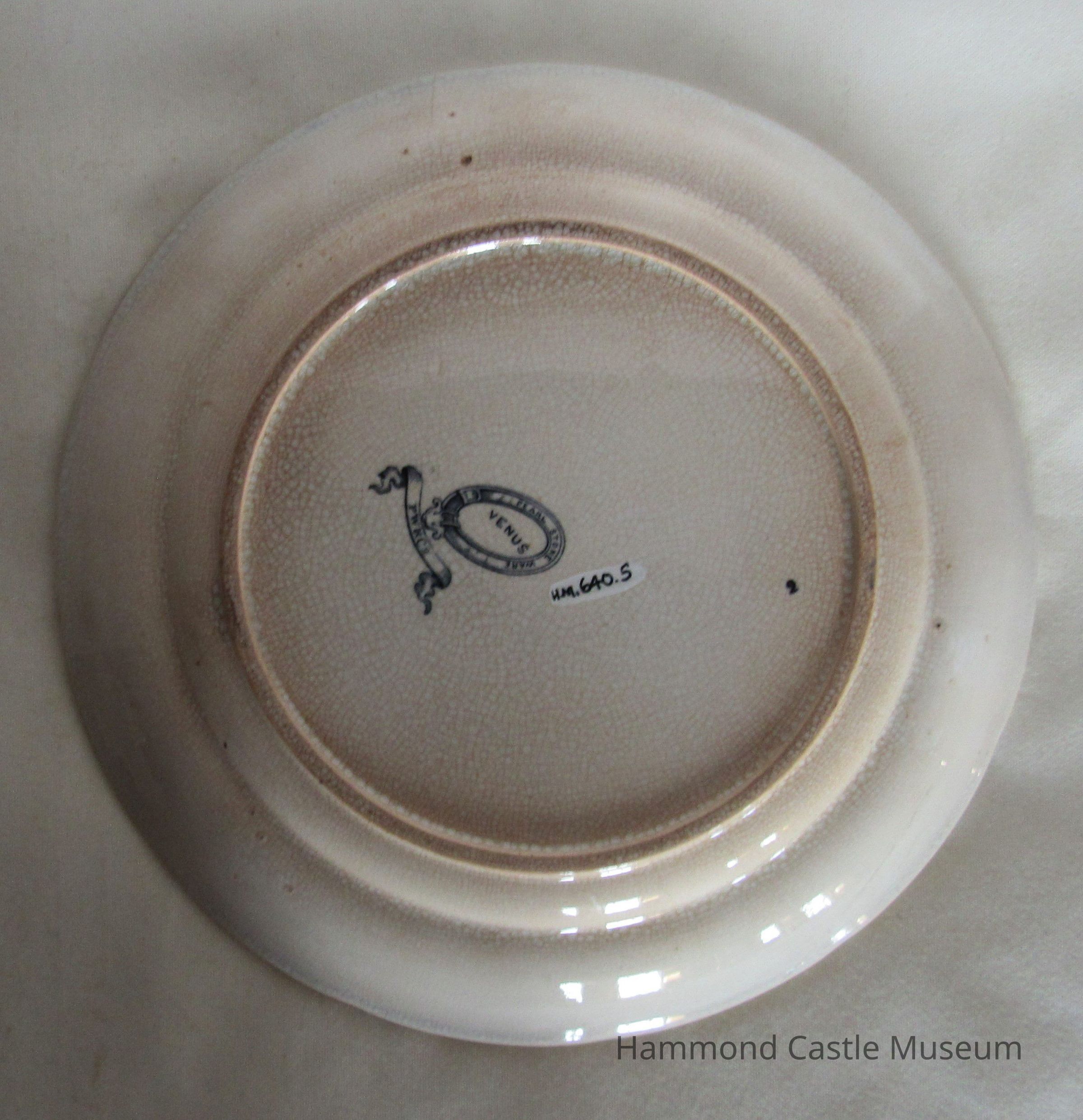 Transferware - Pearl stone ware plate. Venetian scene in blue. Marked: VENUS PW+C(superscript O) 2