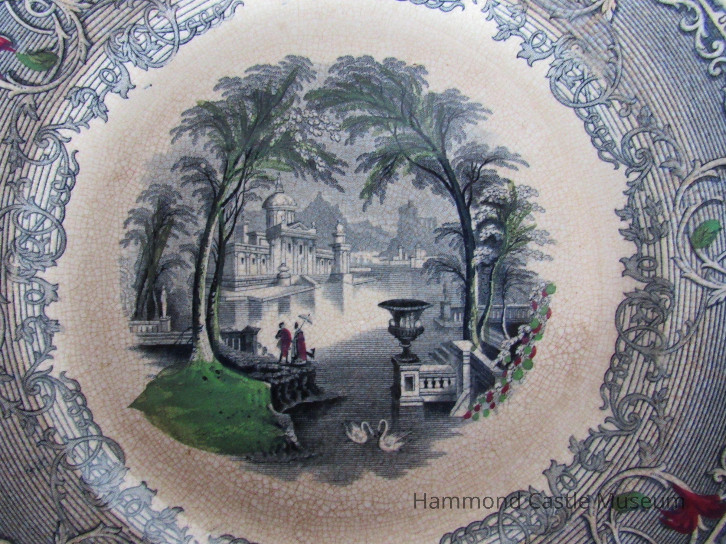 Blue Transferware Plate with Venetian Scene