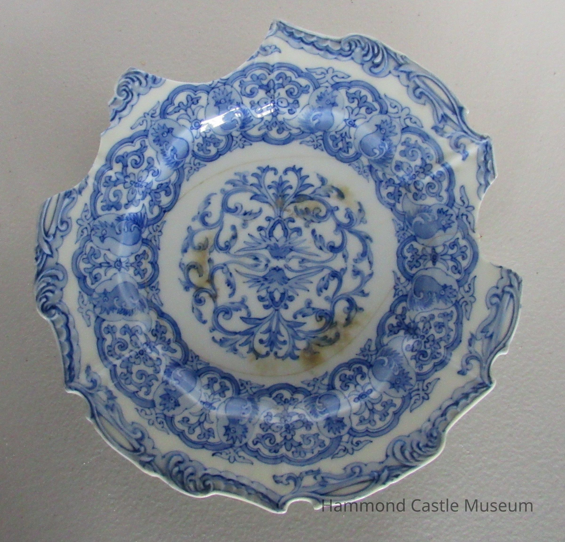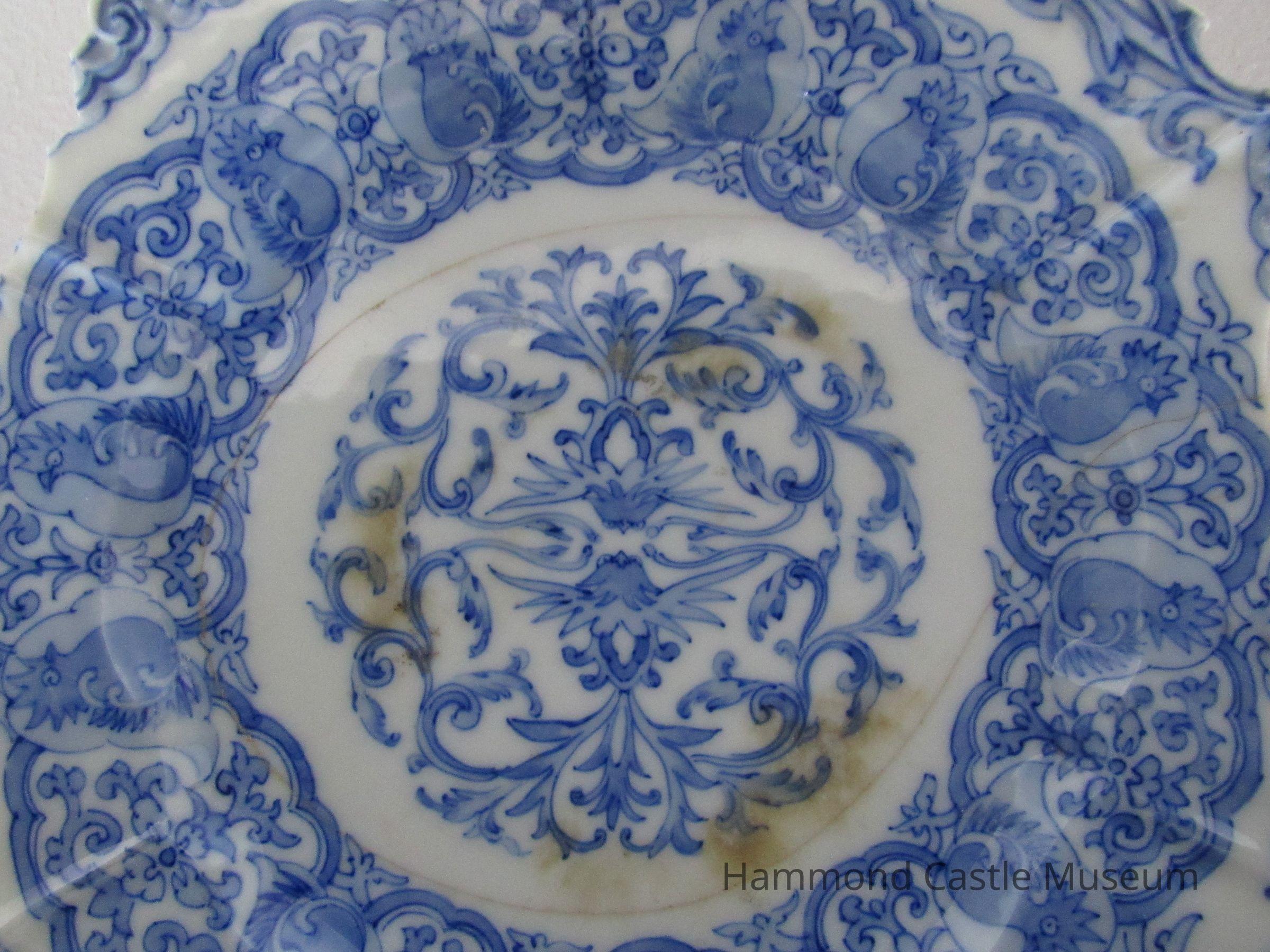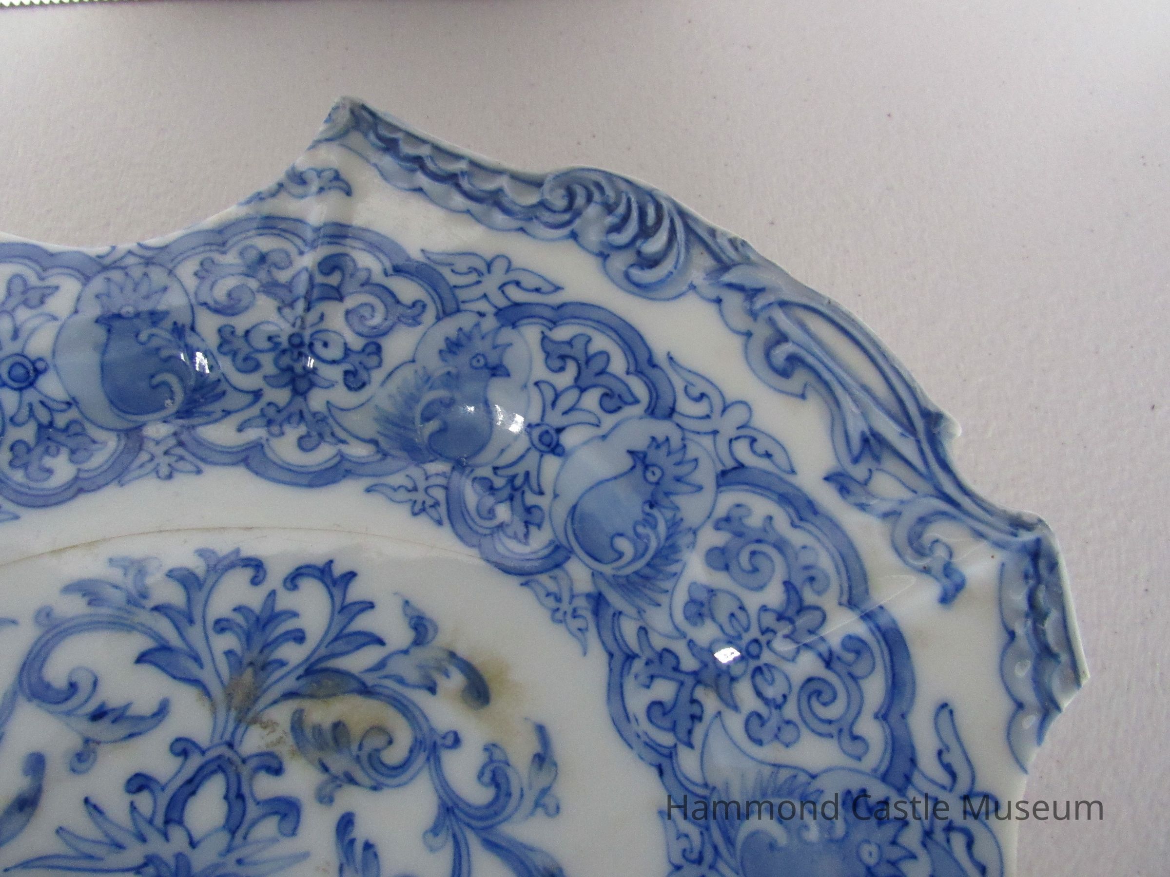 Blue & White Chinese Plate with Rooster Pattern (broken edges)