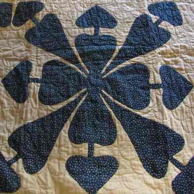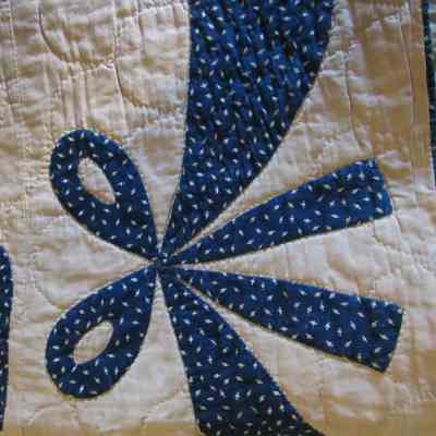 Blue & White Quilt with Flowers & Bows