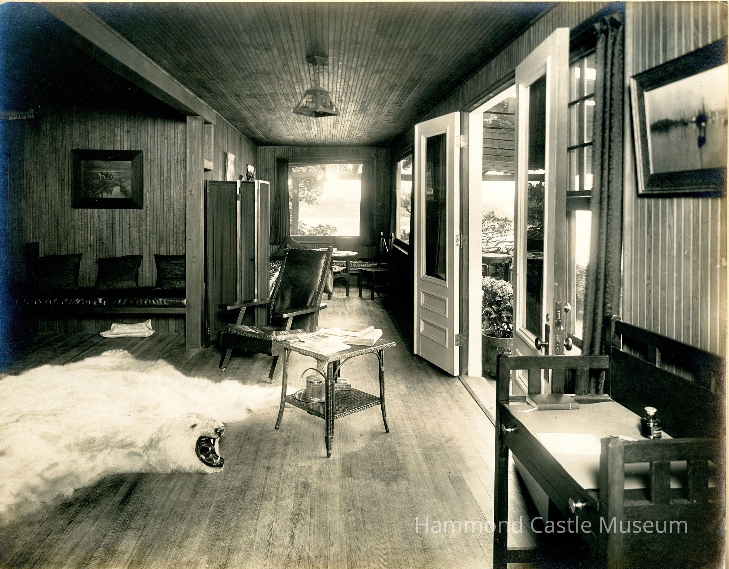 "1908 view of the Bungalow Sun Room. Photograph by Mary H. Northend. Citation: “Mary H. Northend, “Two New England Bungalows,” American House & Garden, Vol. 5, No. 5 (May 1908): 171. [2025 p Hayden]"General Notes