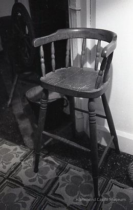 Turned legs and spindles. One leg support broken. Eight spindles in back. Repaired split in seat. 1965 Probate Inventory - Sitting Room