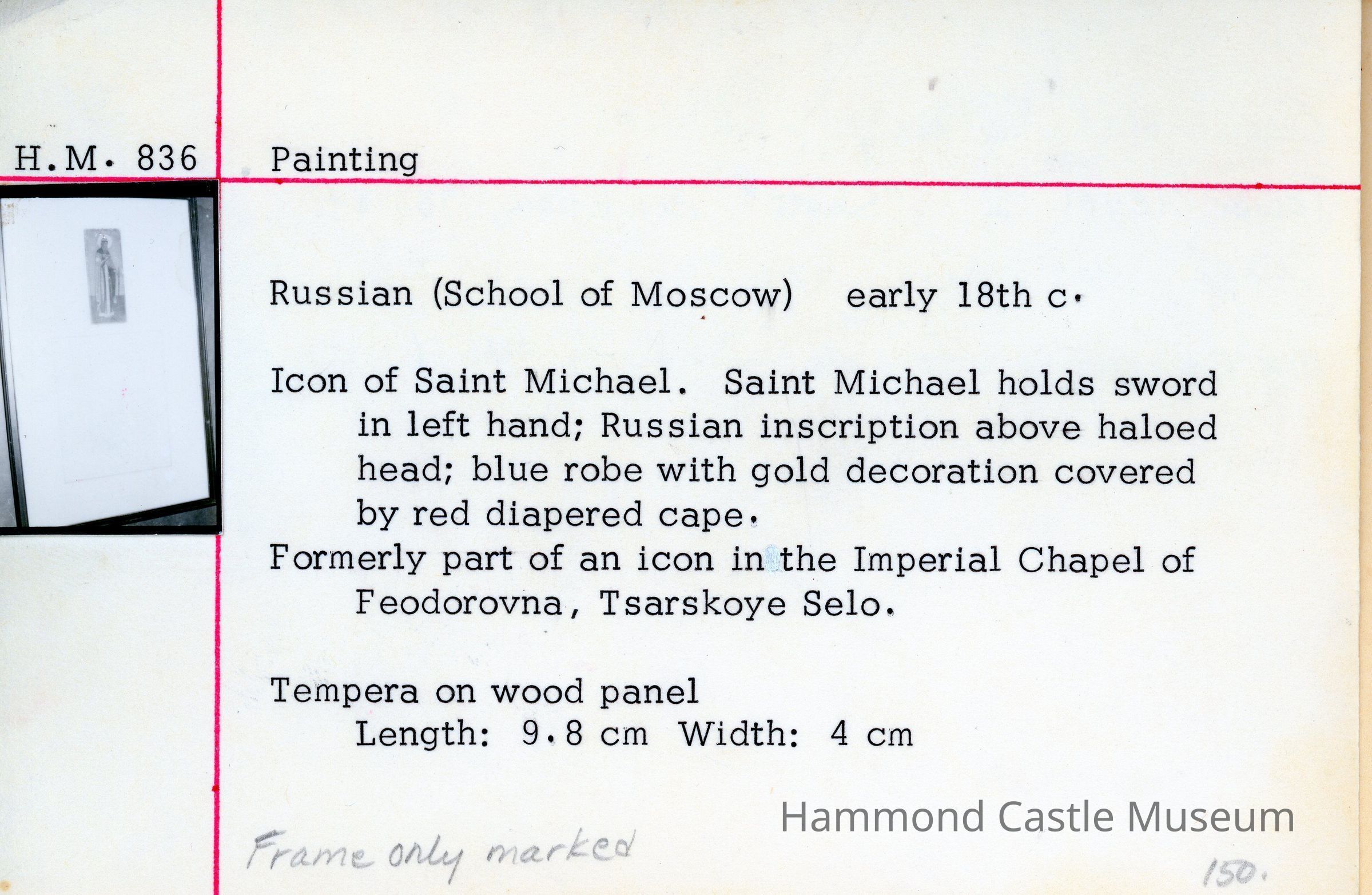 Formerly part of an icon in the Imperial Chapel of Feodorovna, Tsarskoye Selo.Collection