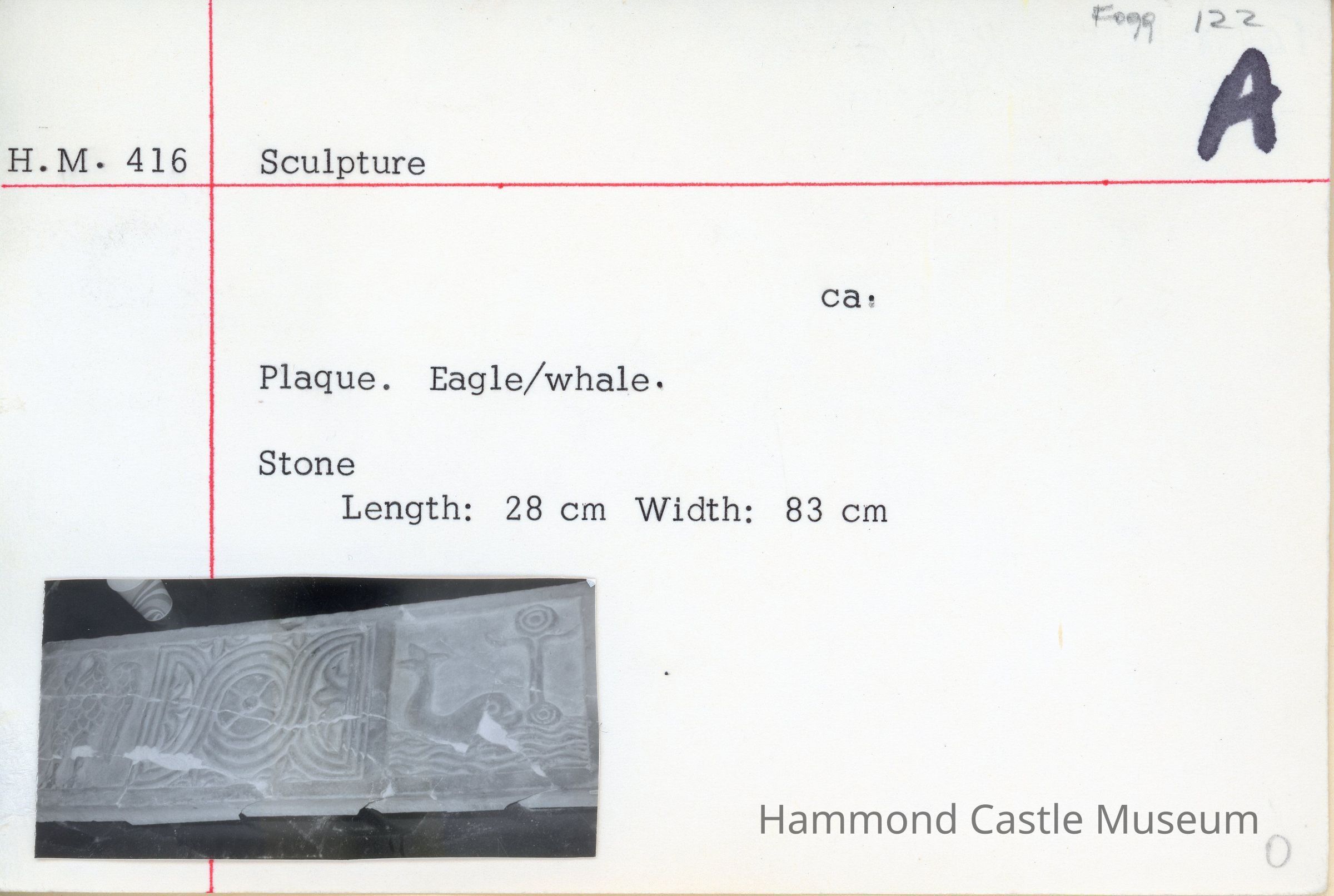 Plaque. Eagle/Dolphin. 20thc carving in Byzantine in style. 1982, fell and broke, location of pieces unknown
