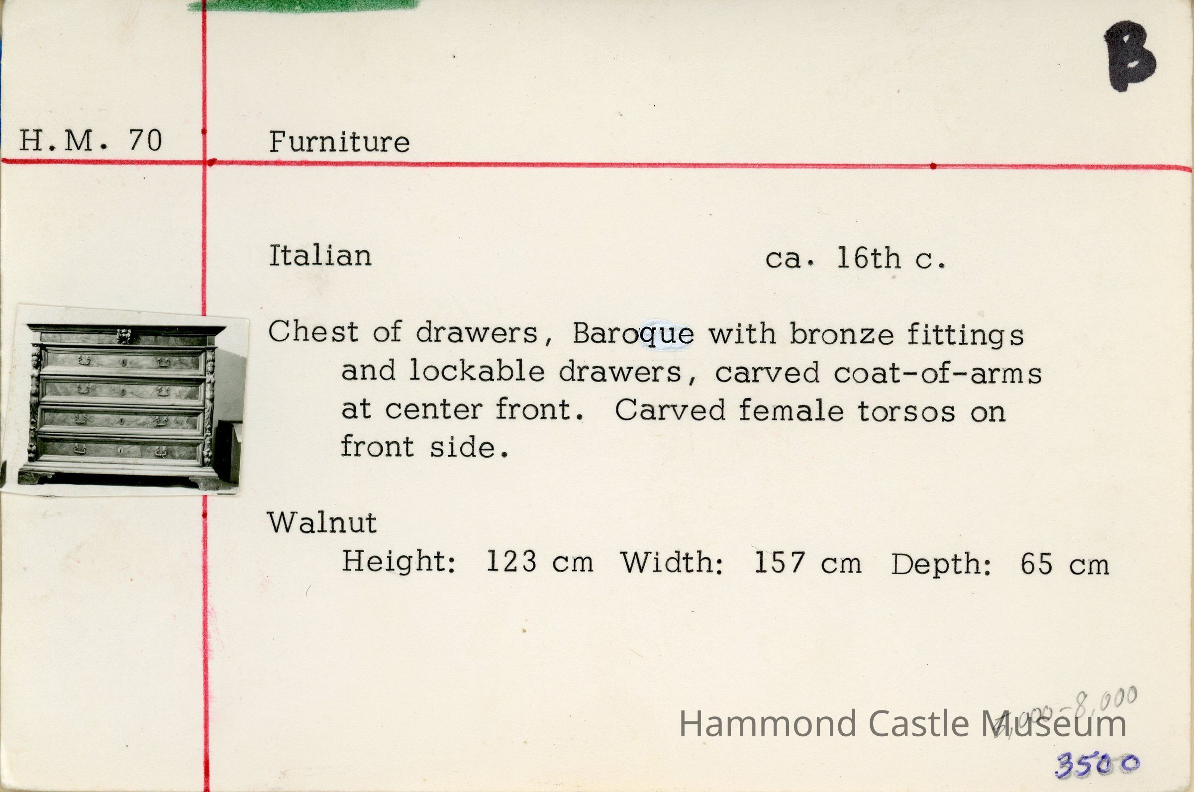ca. 16th c. Italian Chest of Drawers with Female TorsosEntry/Object ID