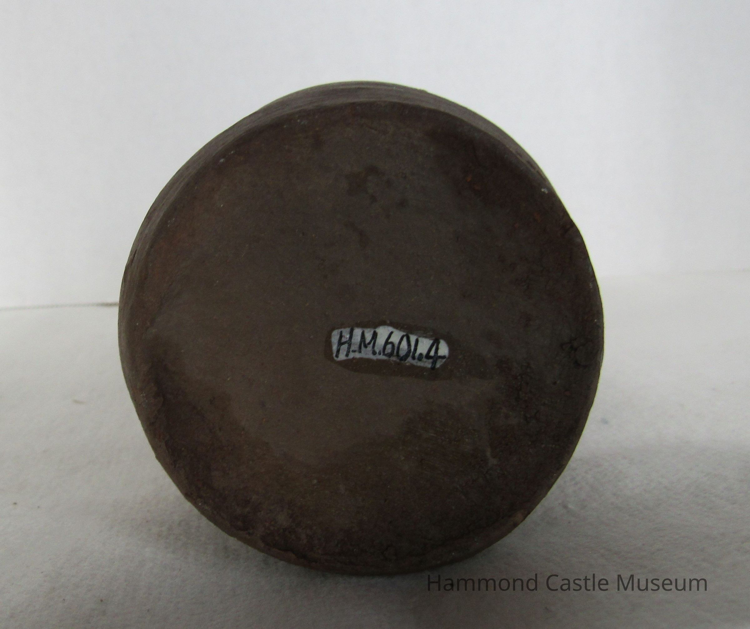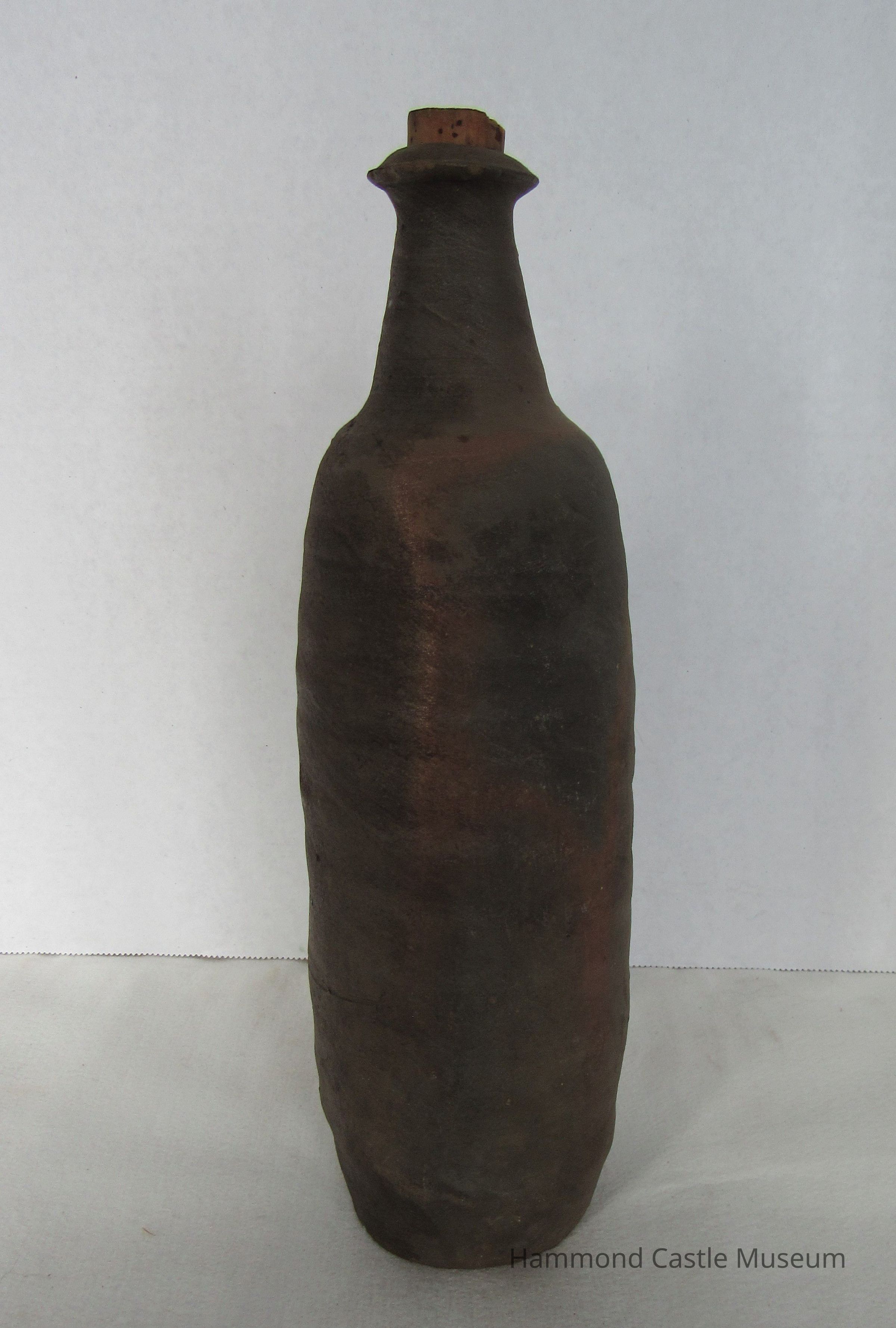 Liquor bottle, sienna and green in color. "Calvados tres Vieux" on label. Unglazed brown and black. 4 of 10.