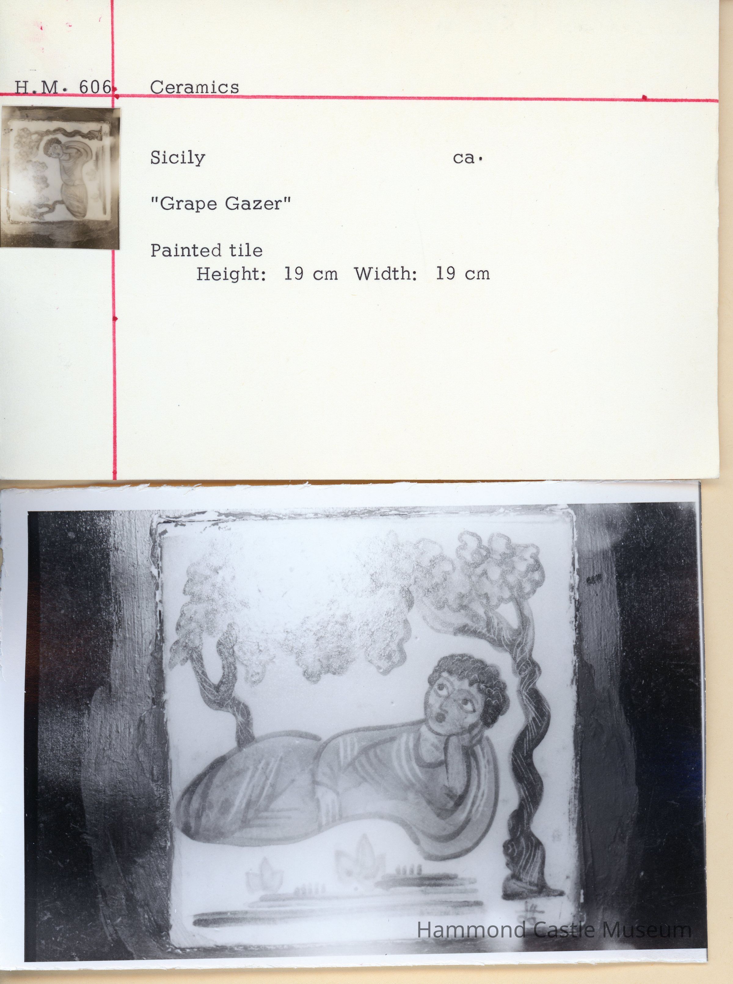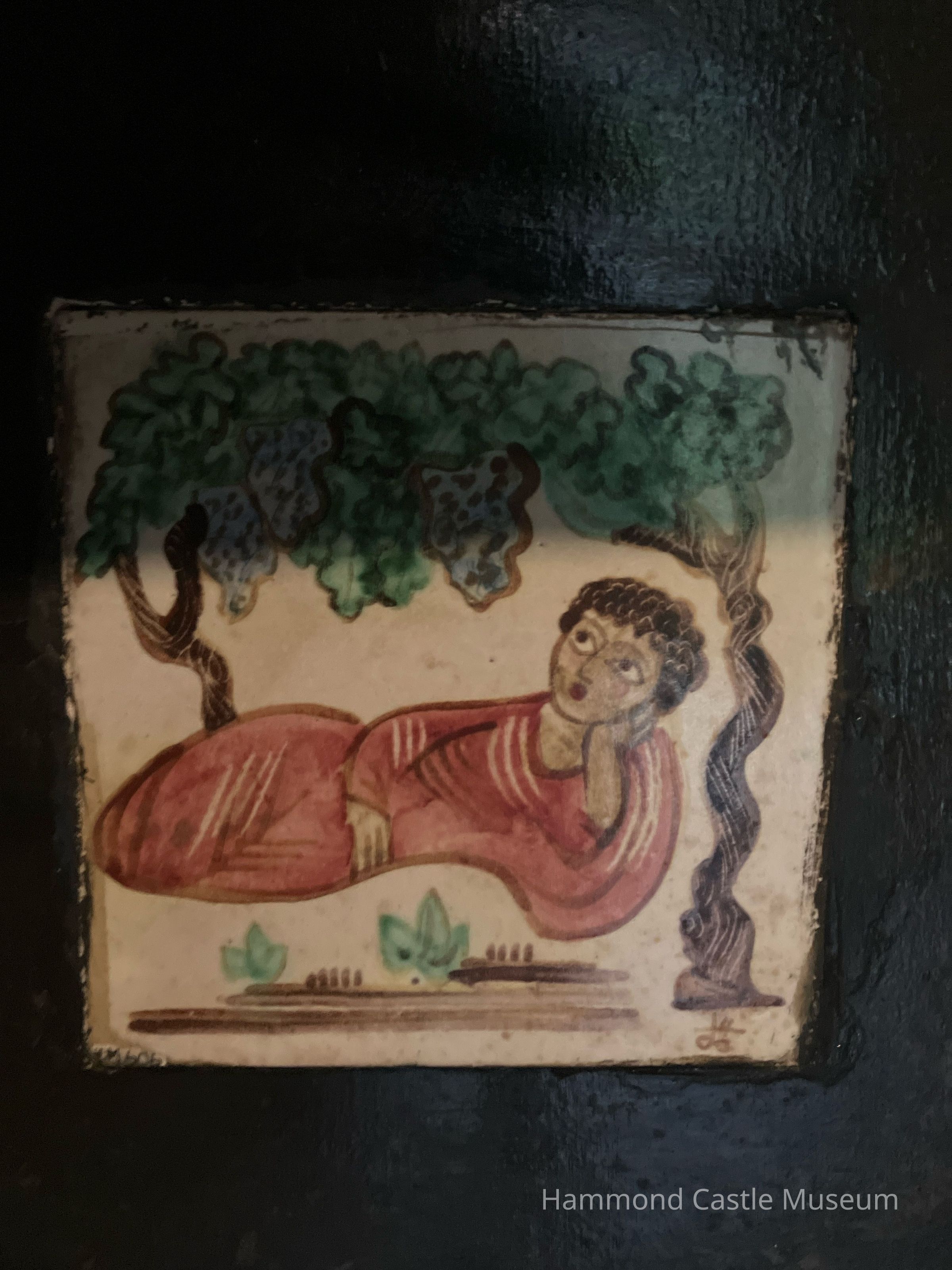 Capri painted ceramic tile "Grape Gazer" purchased 1928-08-15 from Libreria Arcadia, Capri