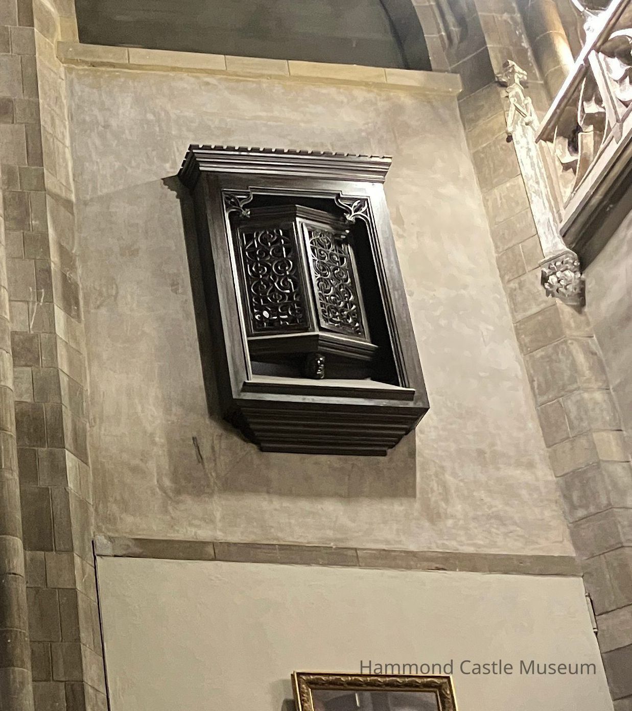 Wooden Shutter doors for organ chambers used as symmetrical decoration in Great Hall.