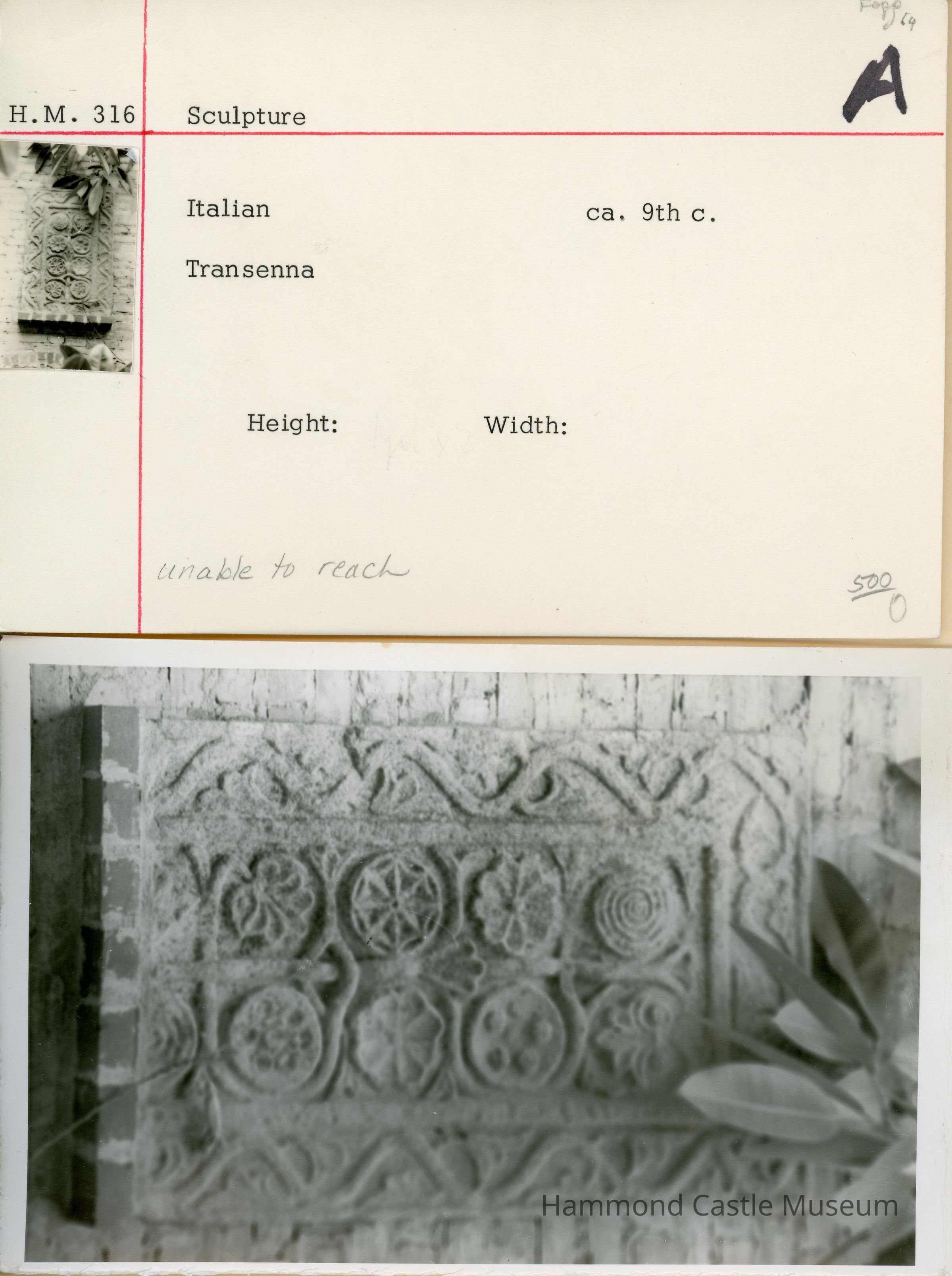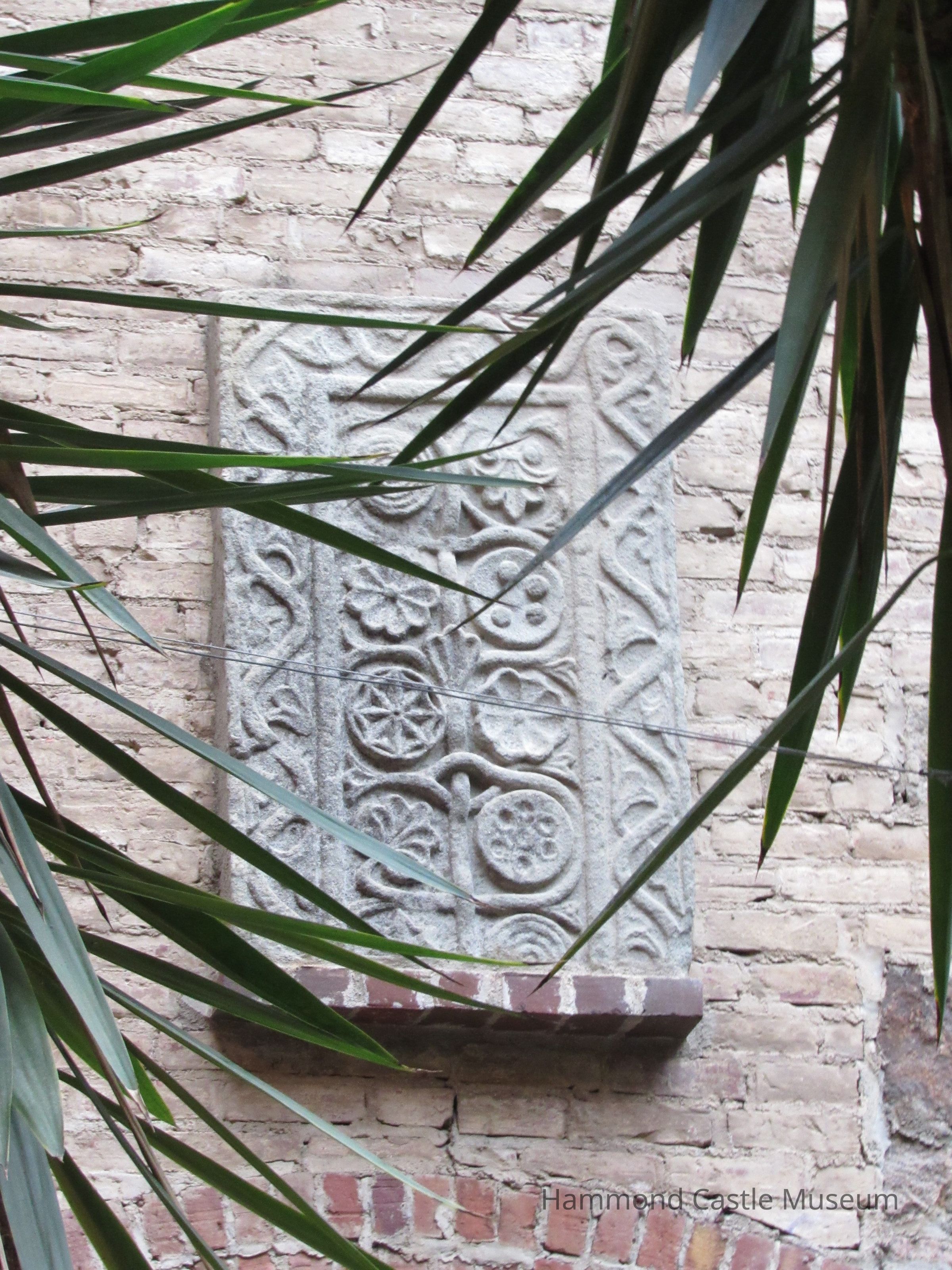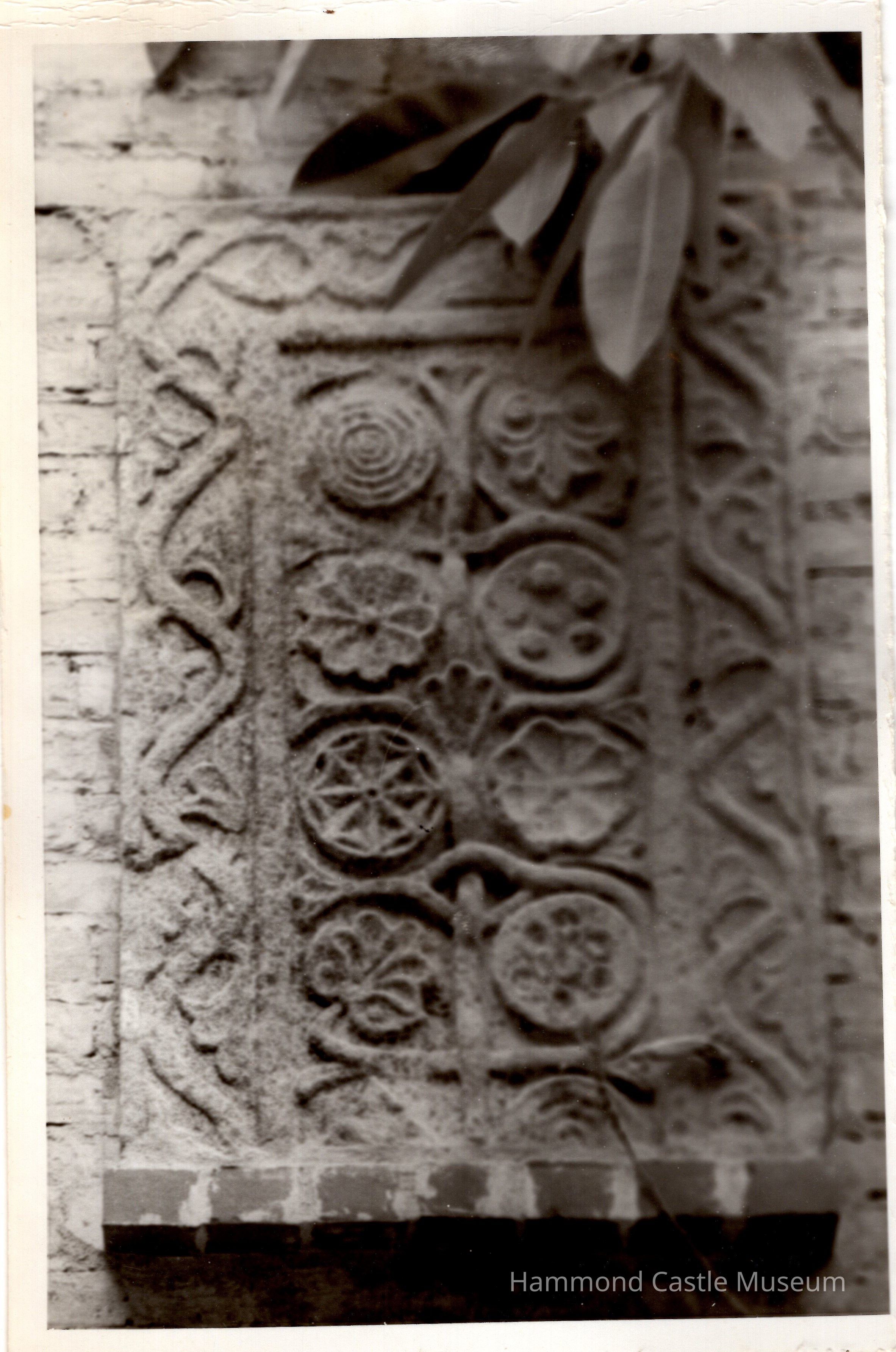 Craved stone panel w floral decorations located on the wall within the courtyard. Italian, circa 9th century Probably 20thc reproduction