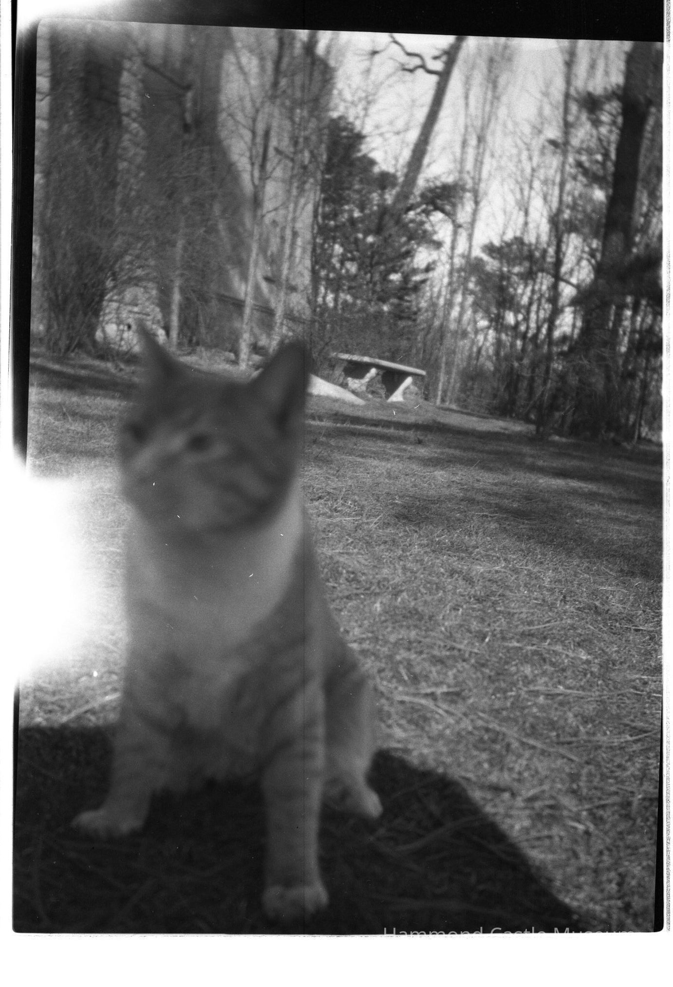 Negative of cat on ocean lawn