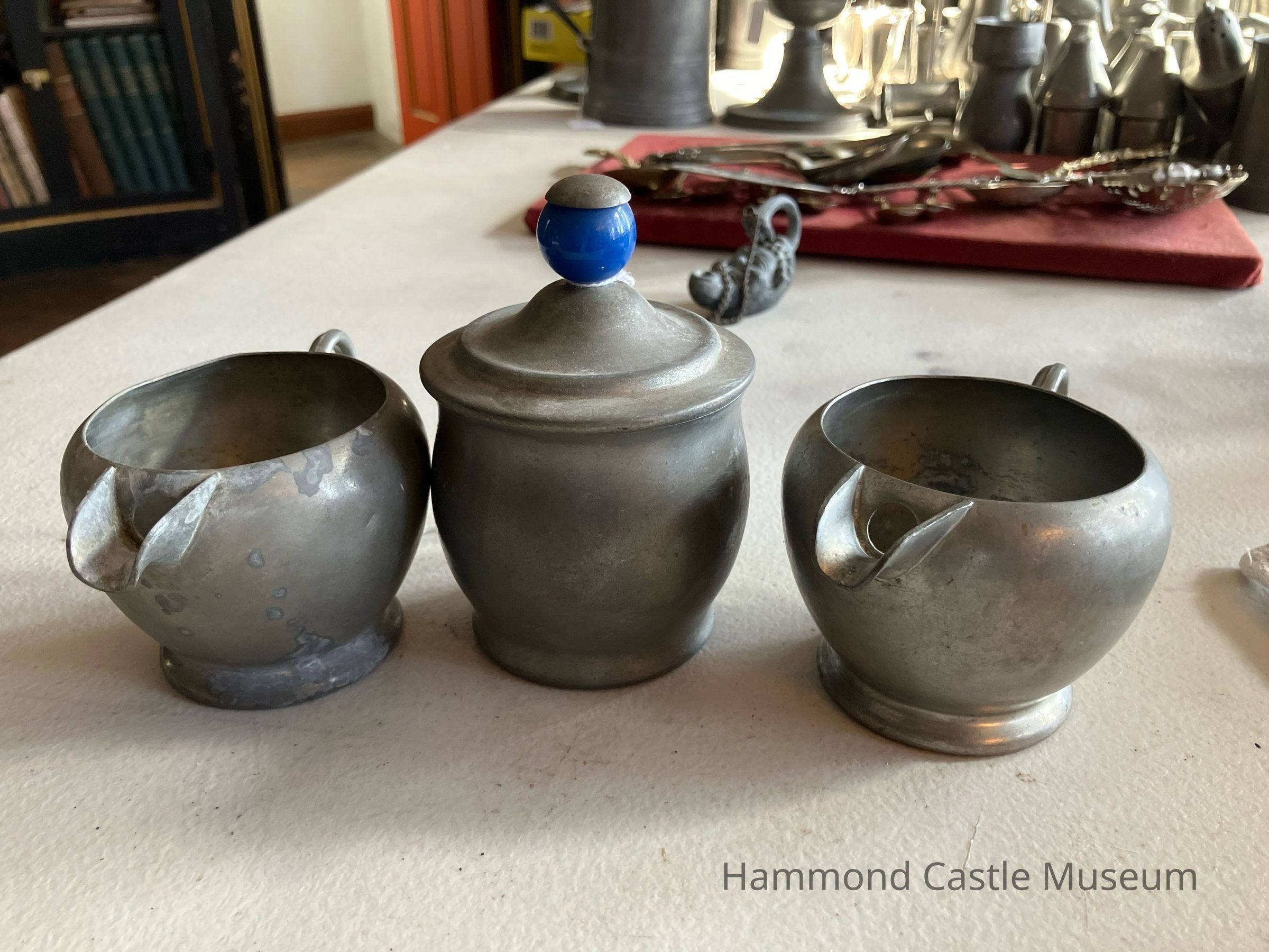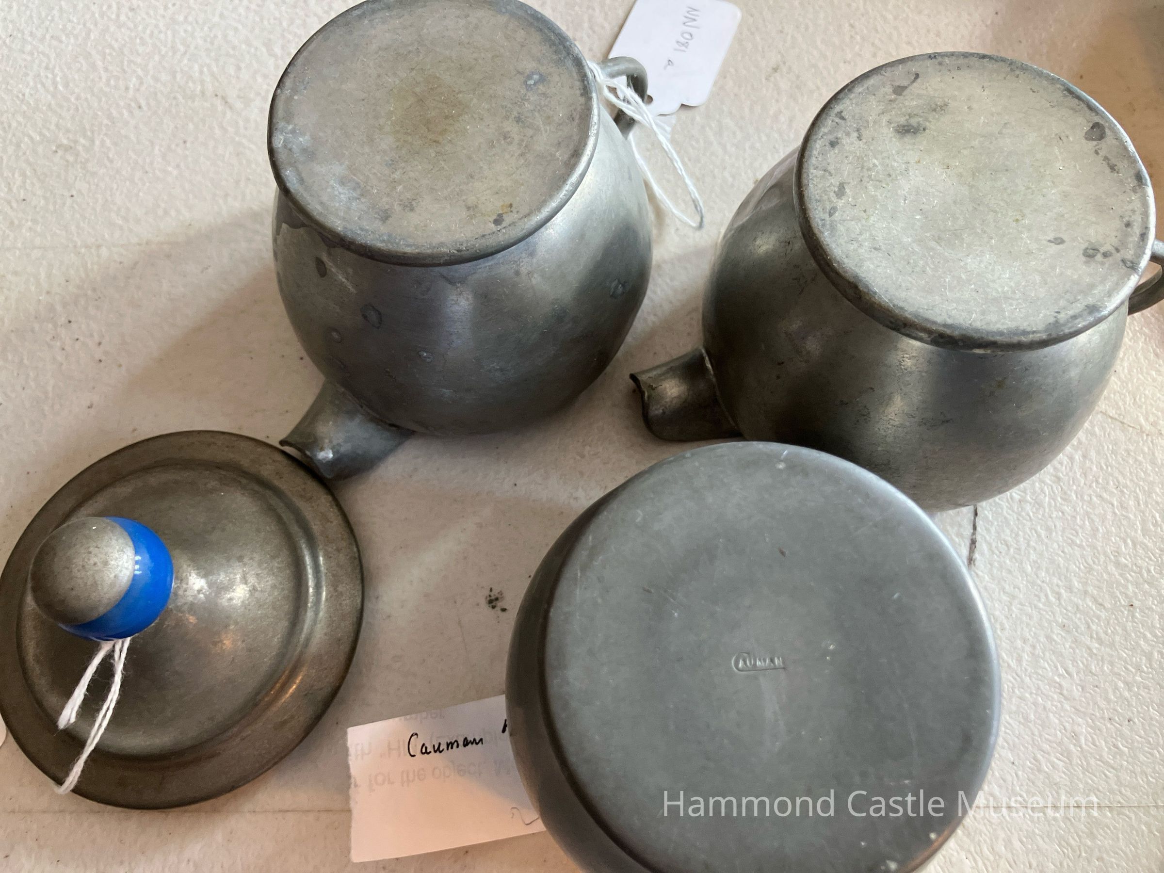 (a) creamer, (b) sugar bowl, (c) sugar bowl lid, (d) 2nd creamer