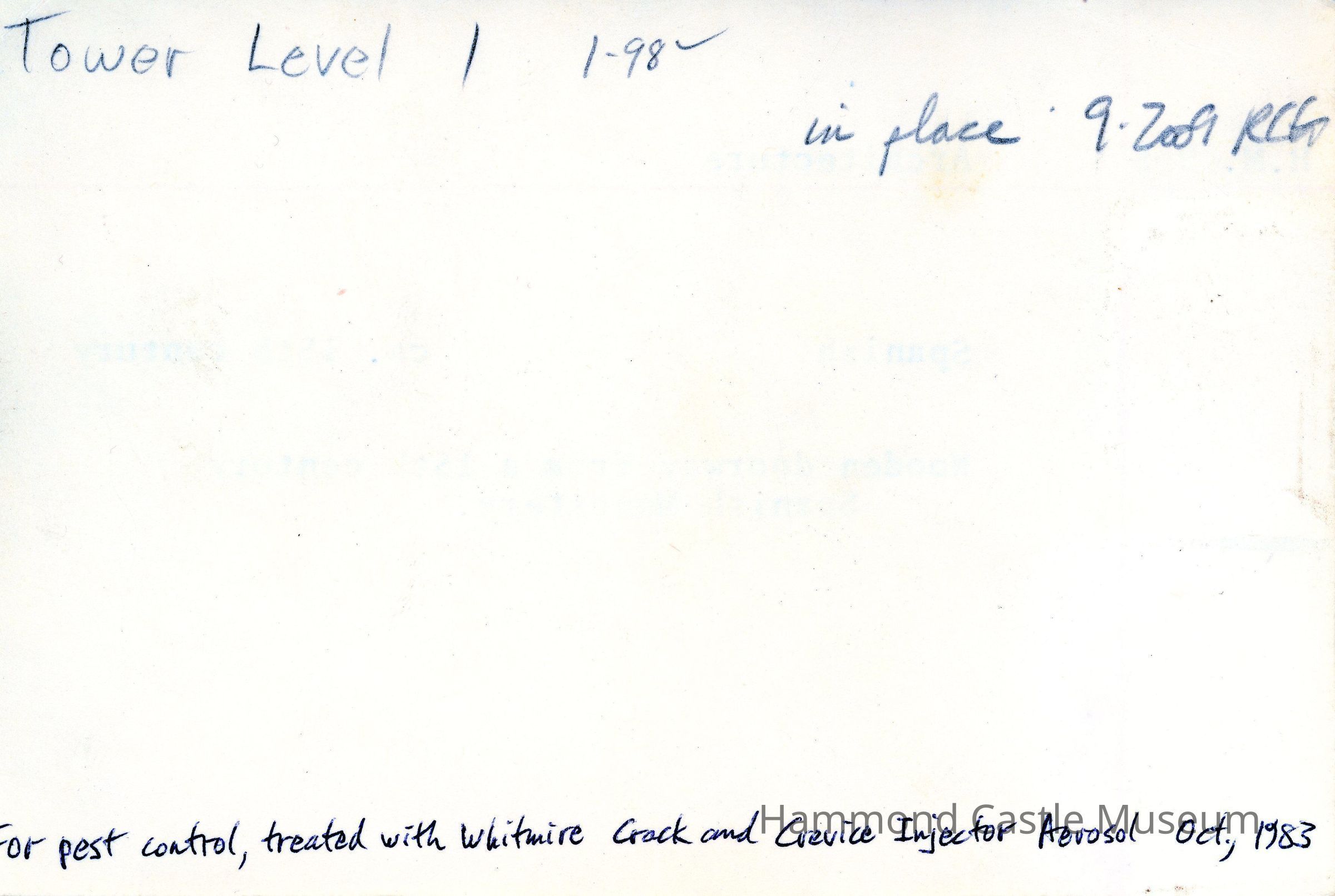 For pest control, treated with Whitmire Crack and Crevice Injector Aerosol in October of 1983.