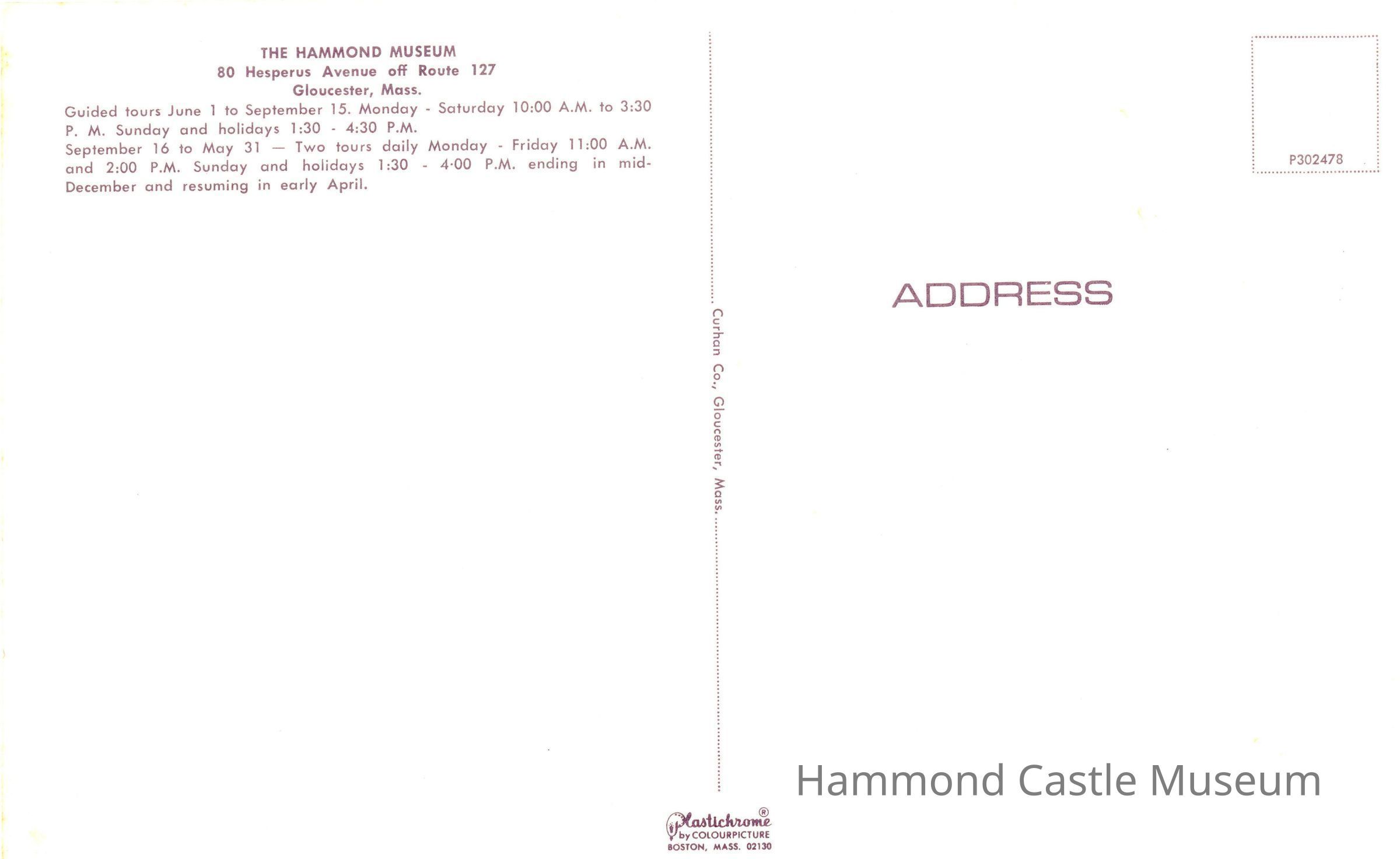 Postcard of ocean side facade with autumn foliage from former terrace 2 copies: PCB-007, 008