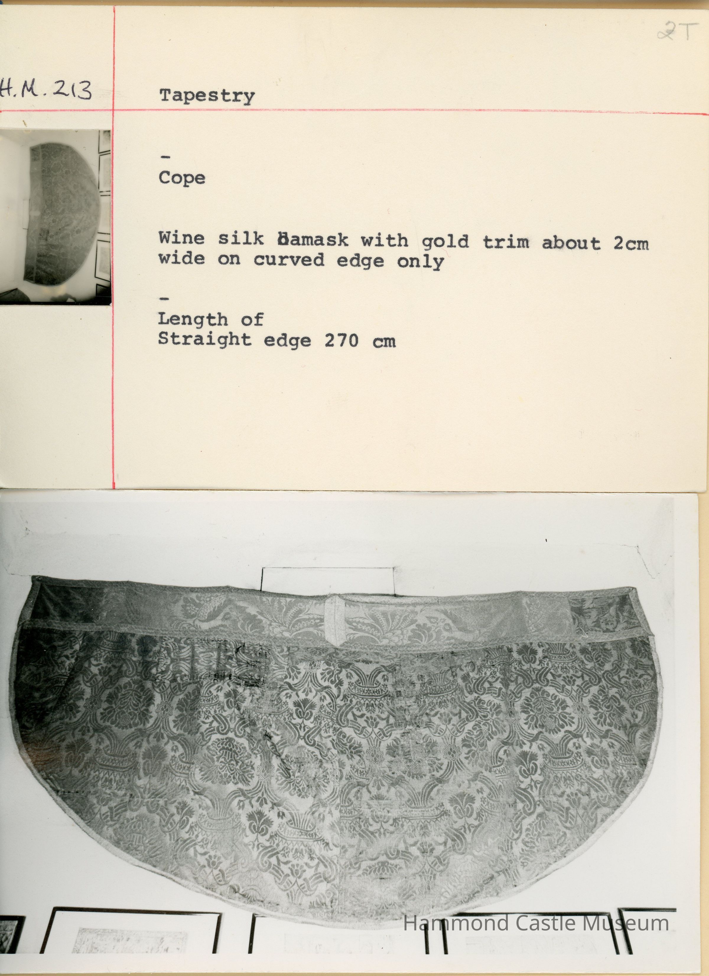 Clergy Cope (Cape) with Gold Trim on Wine Damask